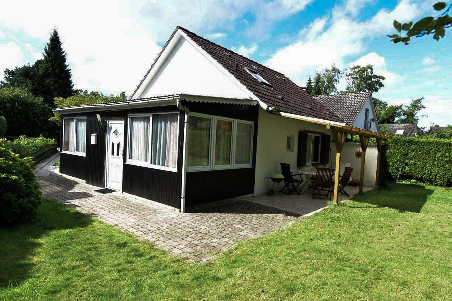 Freistehendes Holzferienhaus am Waldrand in Cuxhaven-Sahlenburg mit Terrasse und naturnahem Garten.