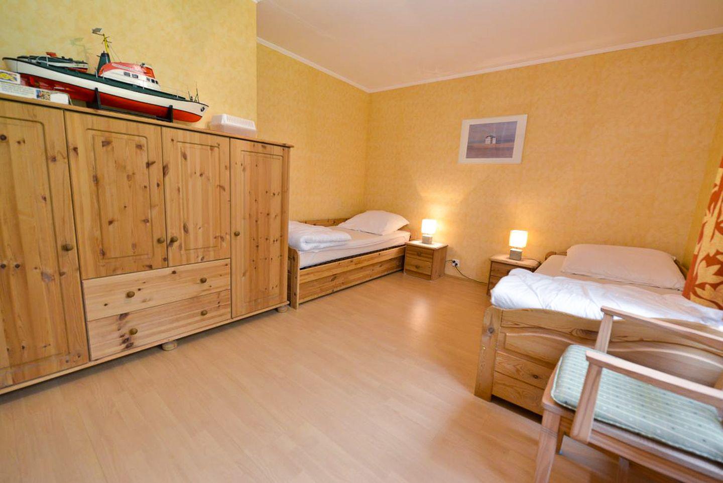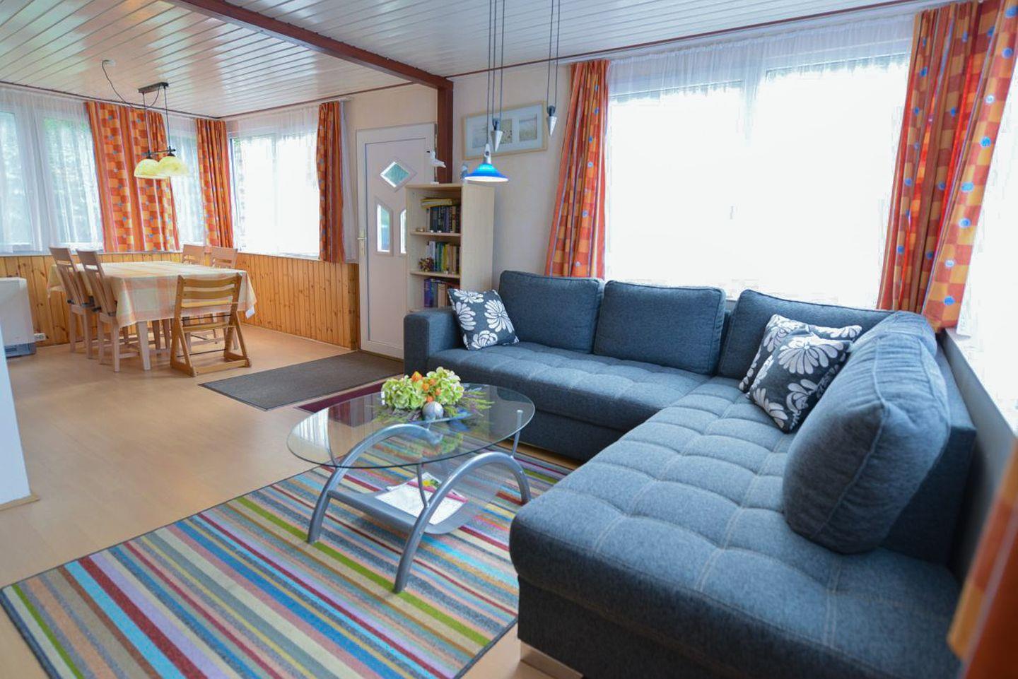 Das freistehende Holzferienhaus liegt idyllisch am Rand des Wernerwaldes in Cuxhaven-Sahlenburg. Auf ca. 63 m² bietet es Platz für bis zu 4 Personen – ideal für Erholung, Naturerlebnisse und frische Nordseeluft. Zur Ausstattung gehören zwei separate Schlafzimmer, ein Tageslichtbad mit Dusche, WC mit einer Stufe, ein zusätzliches Gäste-WC, eine Küchenzeile, ein großer Flatscreen-TV und kostenfreies WLAN. Der helle, offene Wohnbereich mit gemütlicher Couch lädt zum Entspannen ein. Der naturnahe Garten mit überdachter Terrasse grenzt direkt an den Wald – perfekt für Frühstück im Freien oder ruhige Abende. Haustierfreies Nichtraucherhaus, besonders geeignet für Allergiker.