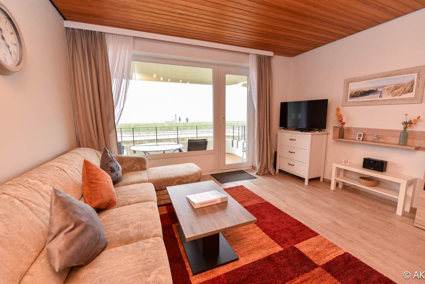 Die gemütlich eingerichtete Wohnung Nr. 4 im Hochparterre des Hauses NAUTILUS bietet eine direkte und uneingeschränkte Seesicht auf das UNESCO-Weltnaturerbe Wattenmeer sowie den Weltschifffahrtsweg mit seinen beeindruckenden Schiffen.