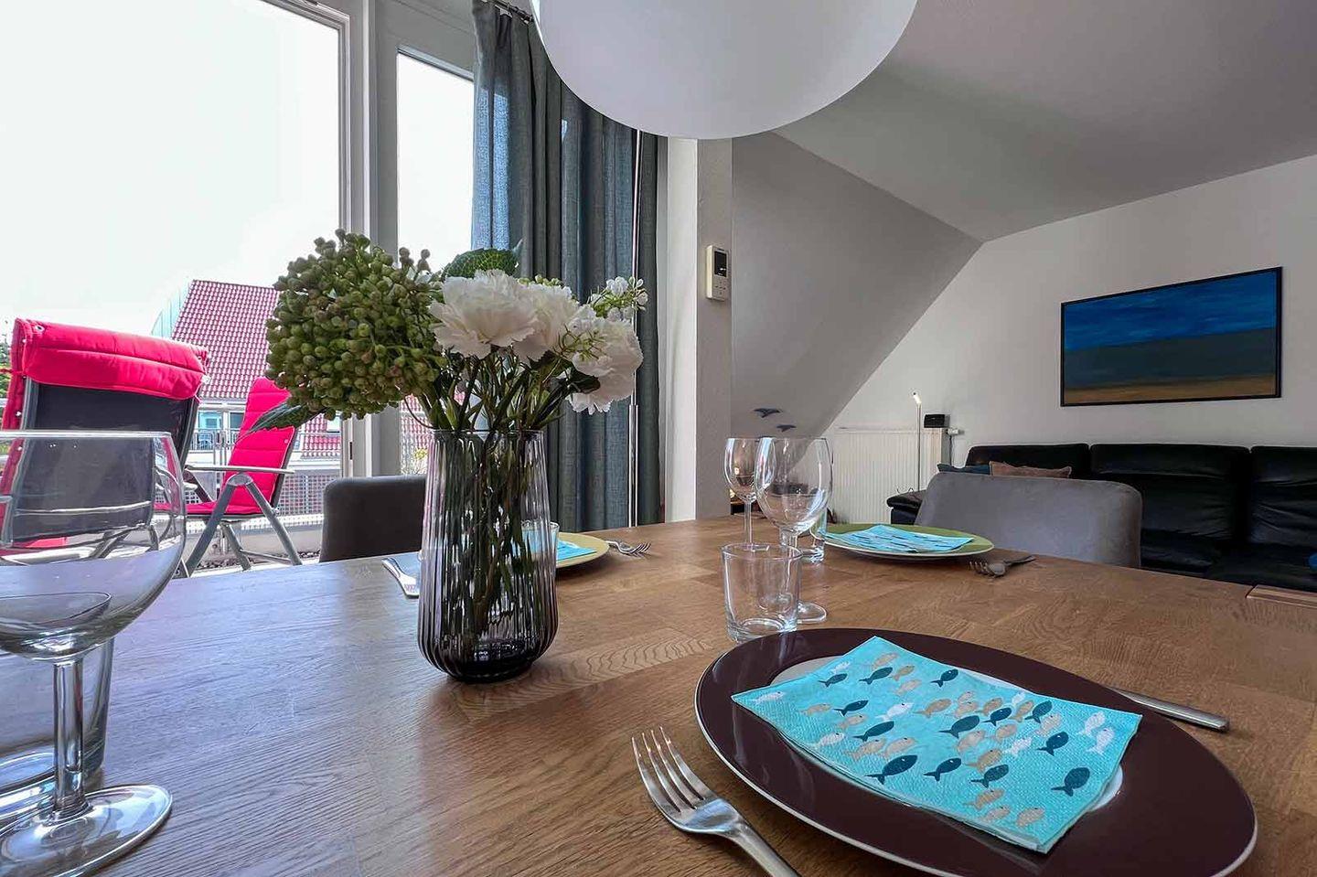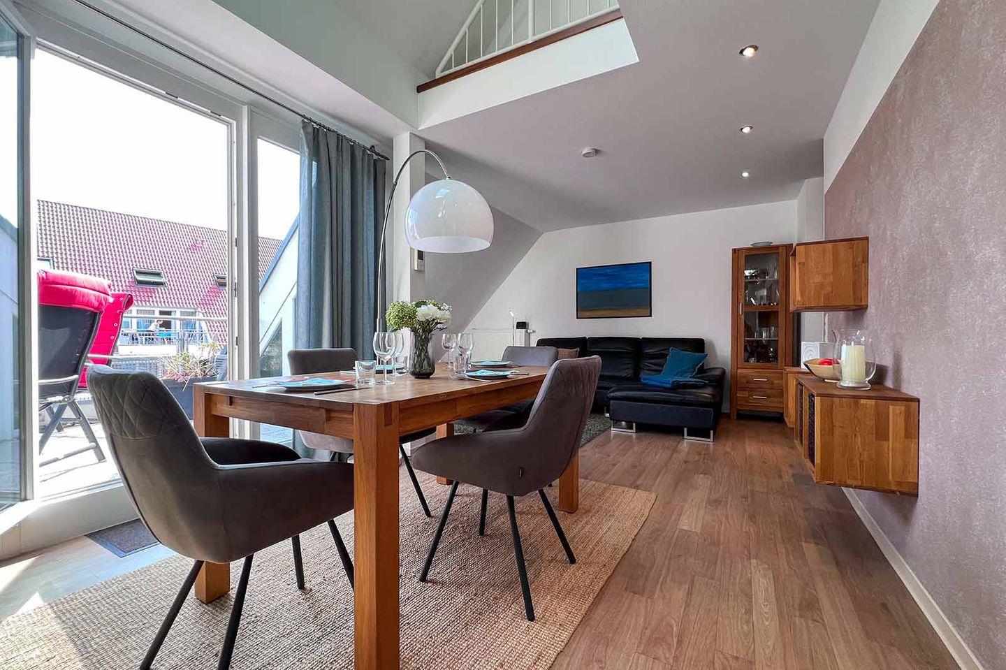 Moderne Ferienwohnung in Cuxhaven-Duhnen mit Balkon, WLAN, Sauna, Pool und Strandnähe für entspannte Nordseeferien.