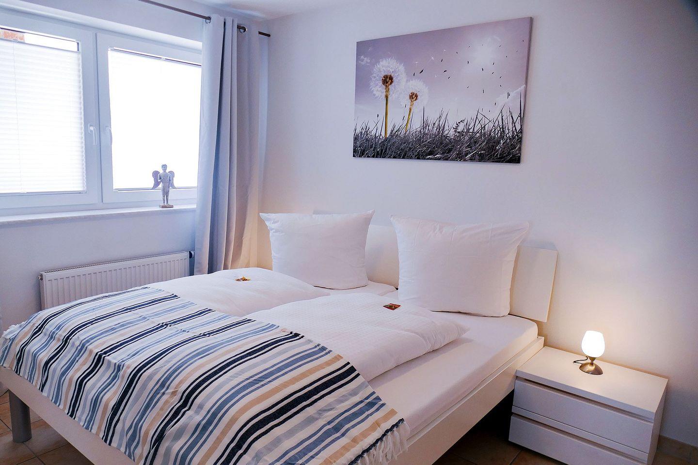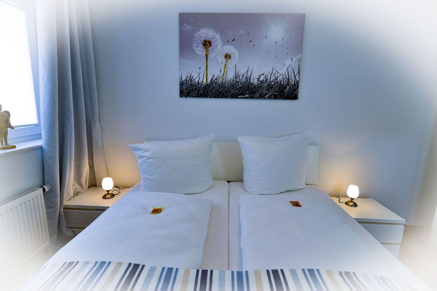 Auf ca. 50 m² Wohnfläche bietet die helle, modern eingerichtete Ferienwohnung Platz für bis zu 4 Personen. Zwei separate Schlafzimmer sorgen für Komfort und Privatsphäre. Der Balkon im 3. Obergeschoss bietet einen schönen Blick Richtung Meer und lädt zum Entspannen ein.