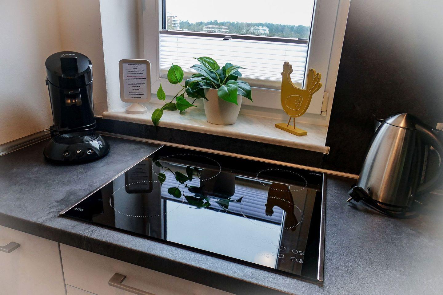 Zur Ausstattung gehören eine voll ausgestattete Einbauküche mit Ceranfeld, Geschirrspüler sowie Backofen-Mikrowellen-Kombination, ein Tageslichtbad, TV und kostenfreies WLAN. Ein eigener PKW-Stellplatz direkt am Haus ist im Preis inbegriffen.