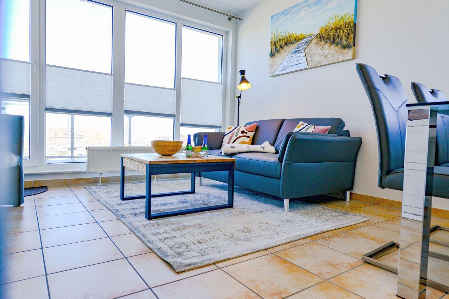 Auf ca. 50 m² im 4. Obergeschoss bietet die moderne Ferienwohnung Platz für bis zu 4 Personen. Zwei gemütliche Schlafzimmer, ein Tageslichtbad sowie ein heller Wohn- und Essbereich sorgen für eine angenehme Wohlfühlatmosphäre.