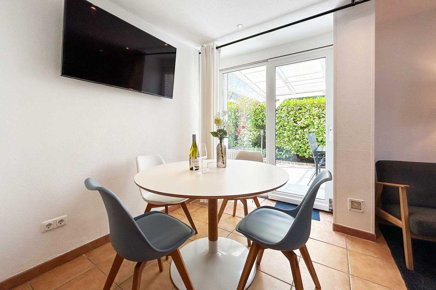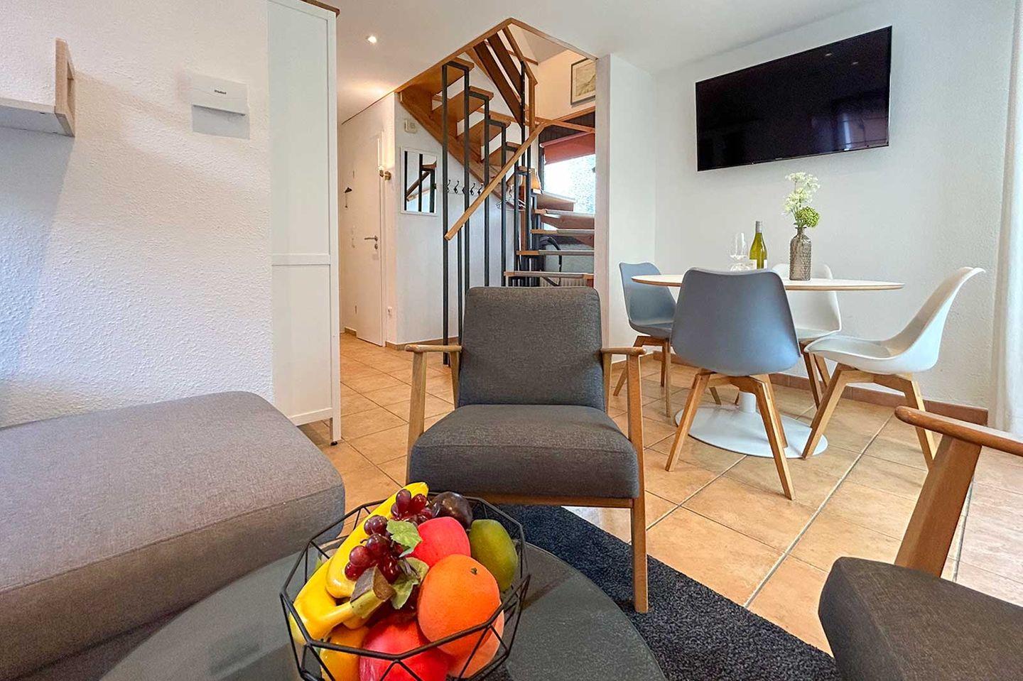 Im Erdgeschoss erwartet Sie ein heller und gemütlicher Wohn-/Essbereich mit einer überdachten Terrasse. Die separate Küche ist vollständig ausgestattet und das moderne Duschbad mit WC rundet das Angebot ab.