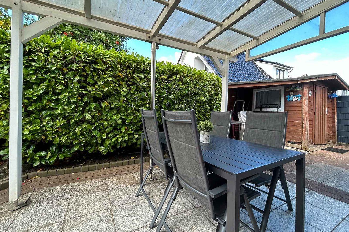 Das freistehende Ferienhaus Likedeeler in Cuxhaven bietet Komfort, Strandnähe und eine überdachte Terrasse für erholsame Urlaubstage.