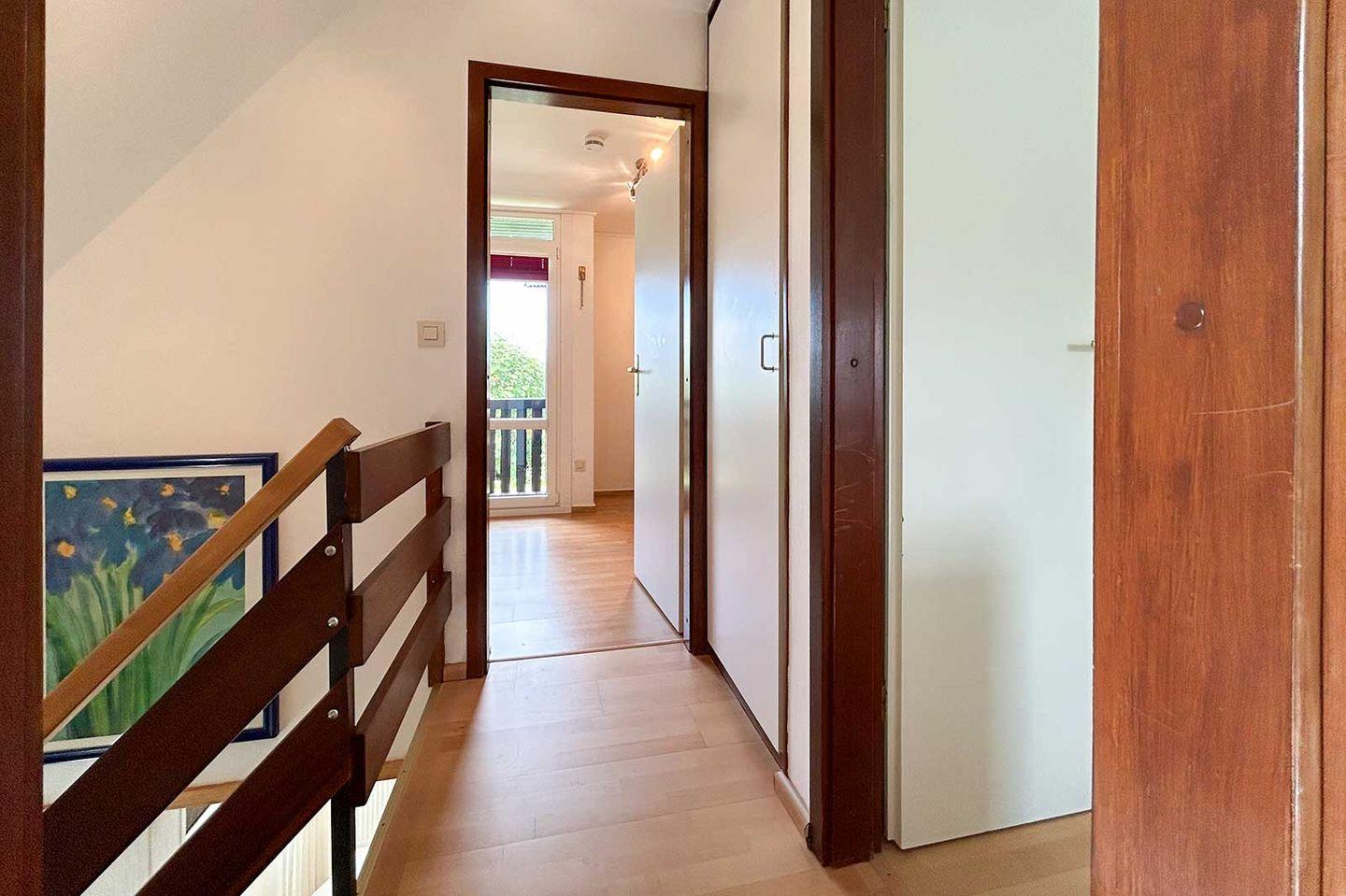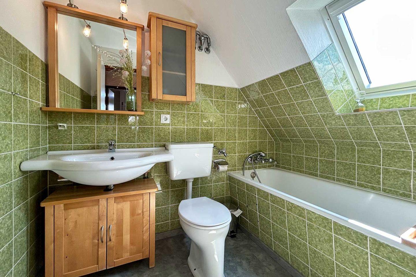 Im Obergeschoss befinden sich zwei Schlafzimmer: Eines mit einem Doppelbett und einem kleinen Balkon sowie einem TV. Das TV-Gerät im Schlafzimmer kann über einen mitgebrachten TV-Stick in Betrieb genommen werden (keine eigene Anbindung an Antenne/Kabel/Satellit!). Kleidung kann in einem kleinen Schrank auf dem Flur und in je einer Kommode im Schlafzimmer und im Kinderzimmer verstaut werden, da im Schlafzimmer kein Kleiderschrank vorhanden ist. Ebenfalls im Obergeschoss finden Sie ein Badezimmer mit Badewanne.