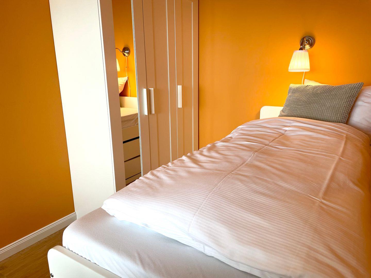 Das Badezimmer verfügt über eine Dusche. Sie profitieren zudem von der Gemeinschaftsnutzung von Waschmaschine und Trockner im Haus, sodass auch längere Aufenthalte bequem gestaltet werden können.
