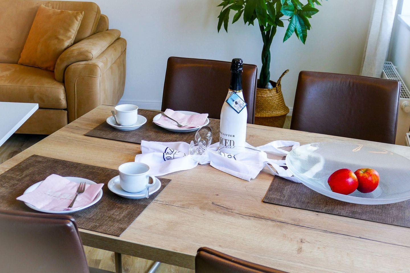 Genießen Sie eine helle 63m² Ferienwohnung im nordischen Stil mit Balkon und Meerblick, nur 200m vom Strand in Cuxhaven entfernt.