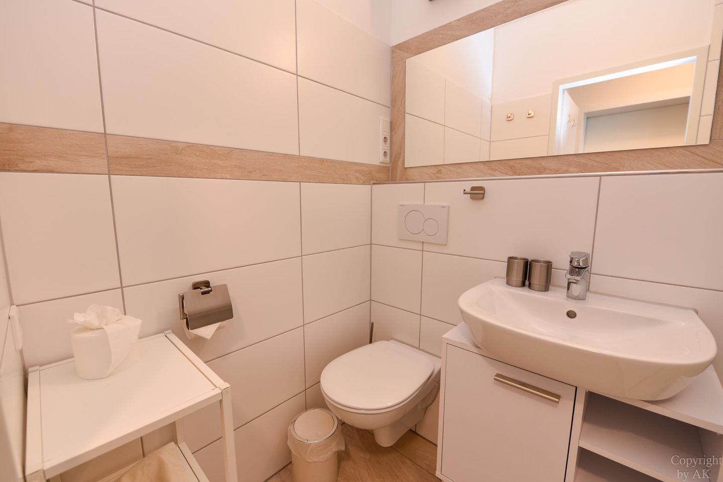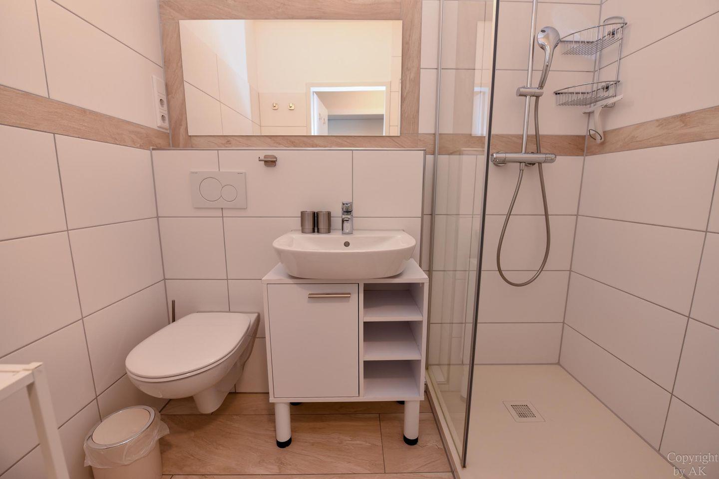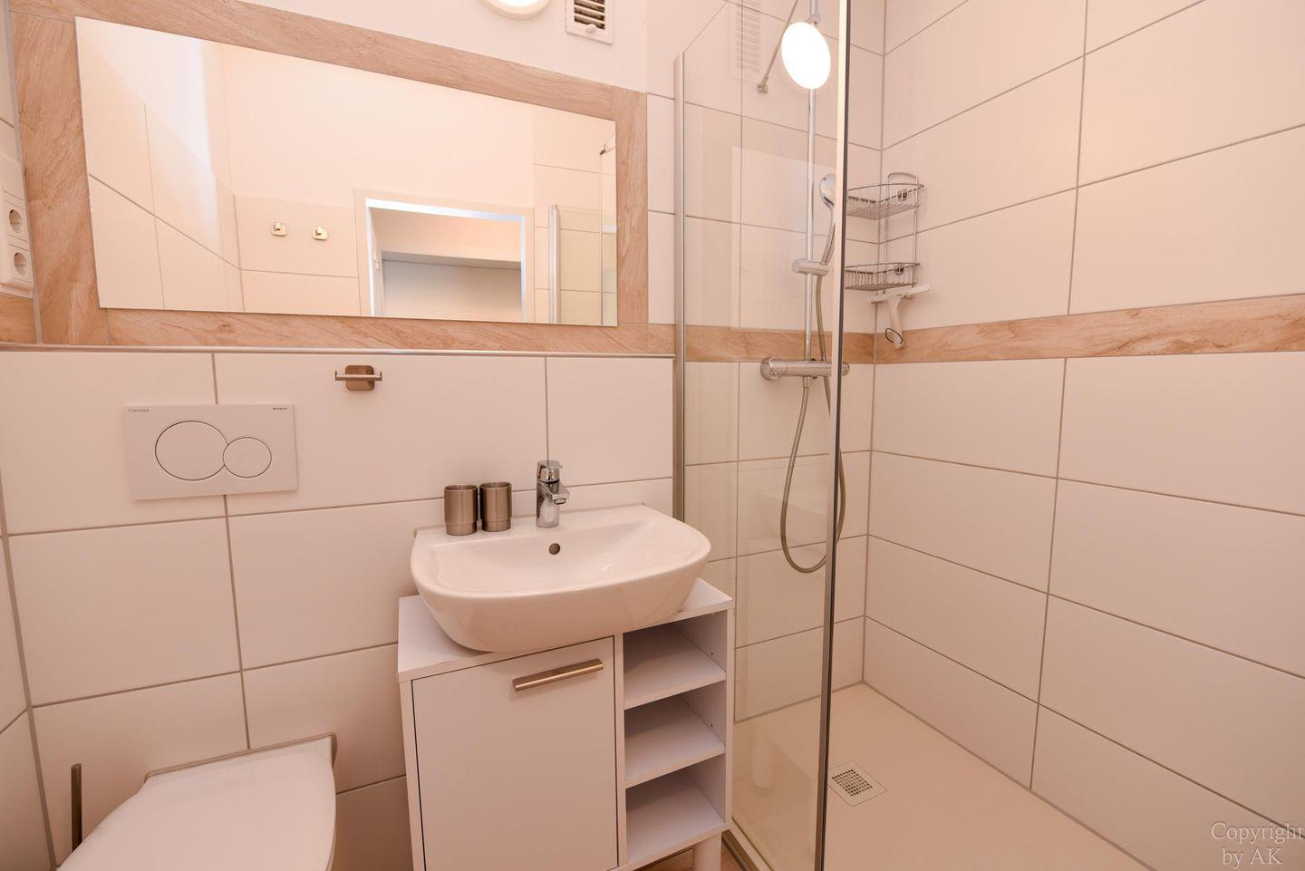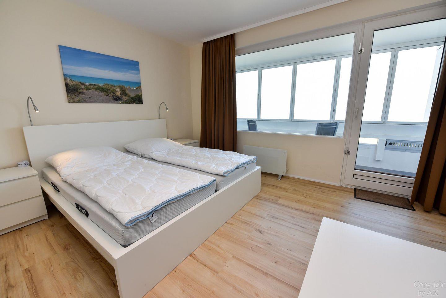 Helles und freundlich eingerichtetes 1-Zimmer Appartement mit gegen Wind und Wetter geschützten Balkon im 6. Stock im Haus "Atlantic", direkt hinter dem Seedeich in Cuxhaven-Dösen.