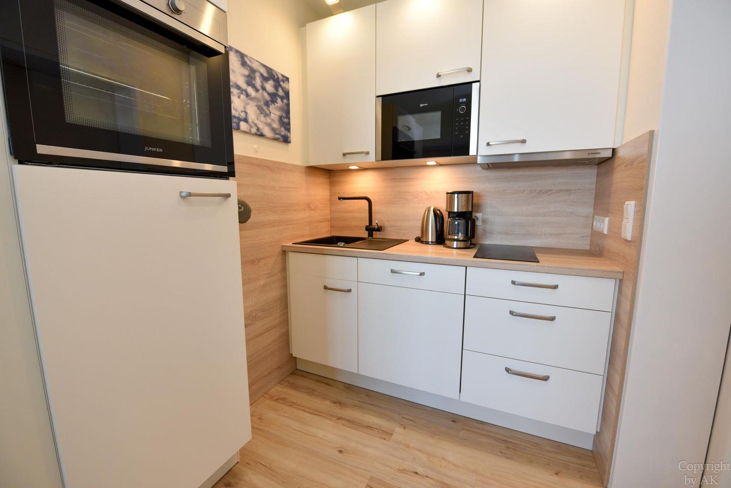 Das für 2 Personen eingerichtete und neu renovierte Appartement verfügt über ein Doppelbett, sowie ein Esstisch von welchem aus Sie einen herrlichen Blick auf das UNESCO-Weltnaturerbe-Wattenmeer und den Weltschifffahrtsweg haben. Die kleine aber feine Küche mit Backofen und Mikrowelle ist voll ausgestattet. Das helle Bad hat eine großzügige und bodentiefe Dusche.