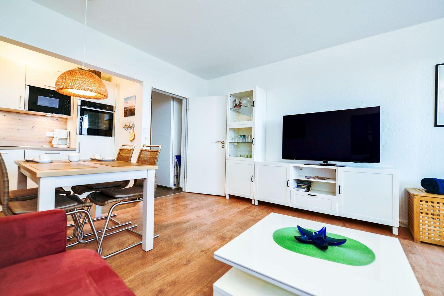 Die 45 m² große Ferienwohnung AS07 im Haus Am Sahlenburger Strand in Cuxhaven liegt direkt am Meer und bietet eine wunderschöne Seesicht über das Wattenmeer bis zur Insel Neuwerk. Vom verglasten, zu öffnenden Balkon genießen Sie den freien Blick aufs Meer, beobachten Kitesurfer, Reiterkutschen und vorbeiziehende Schiffe. Die helle Wohnung ist modern und komfortabel eingerichtet – mit Küchenzeile, kostenlosem WLAN, TV und einem Schlafzimmer mit zwei gemütlichen Einzelbetten. Ein Schwimmbad im Haus sowie ein Parkplatz direkt vor dem Gebäude sorgen für zusätzlichen Komfort. In der Saison bietet ein Bäcker im Haus frische Brötchen für Ihr Frühstück. Wald, Meer und Heide liegen in unmittelbarer Nähe und laden zu Spaziergängen, Fahrradtouren und Naturerlebnissen ein. Um allen Gästen eine 100 % rauchfreie Unterkunft zu garantieren, ist das Rauchen auch auf dem Balkon nicht gestattet. Diese Ferienwohnung bietet Entspannung pur – mit direkter Seesicht und bester Lage in Cuxhaven-Sahlenburg.