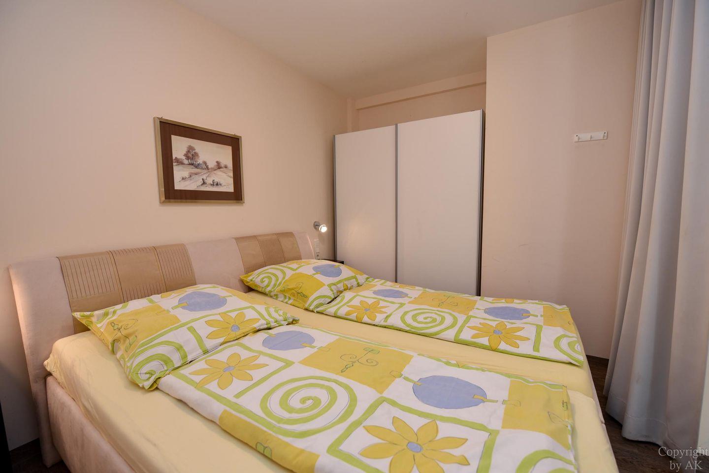 Für erholsamen Schlaf gibt es ein separates (Kinder-)Schlafzimmer mit zwei Einzelbetten sowie ein Doppelbett, das sich in einer Schlafnische im Wohnbereich befindet und durch einen Vorhang abgetrennt werden kann.