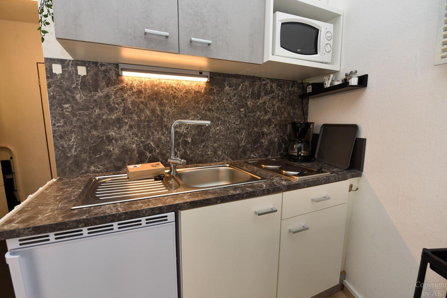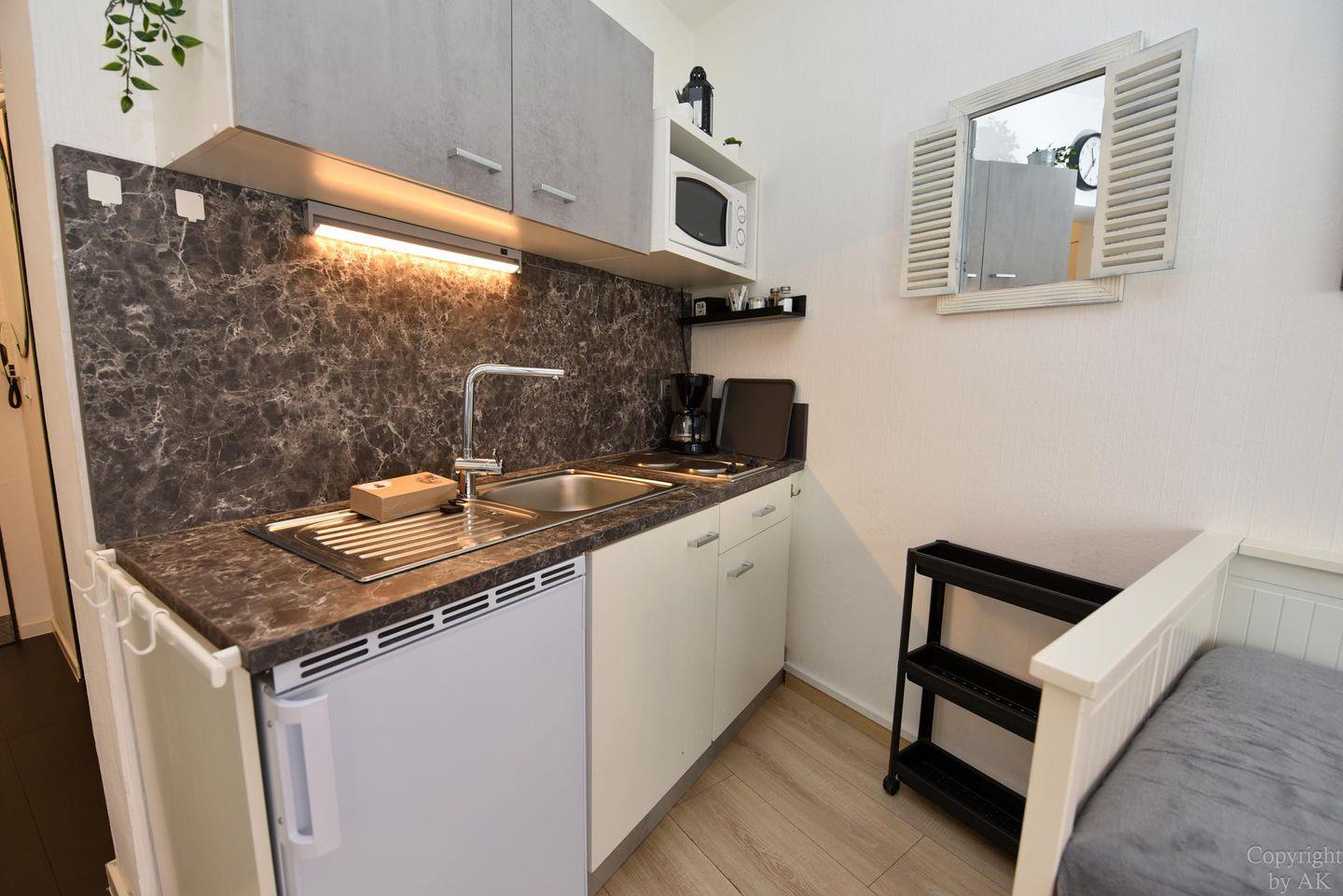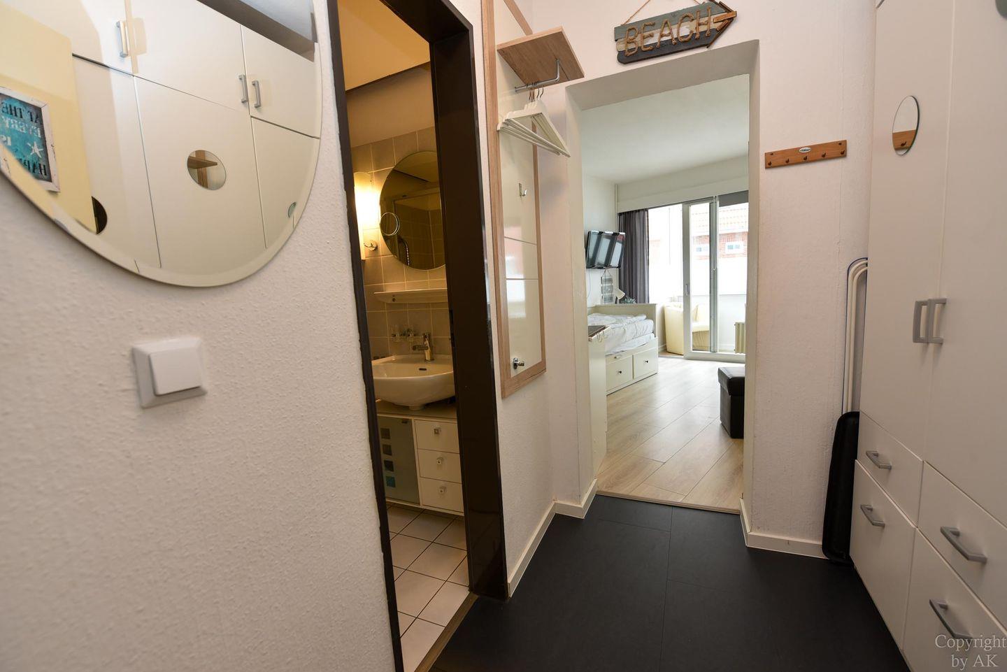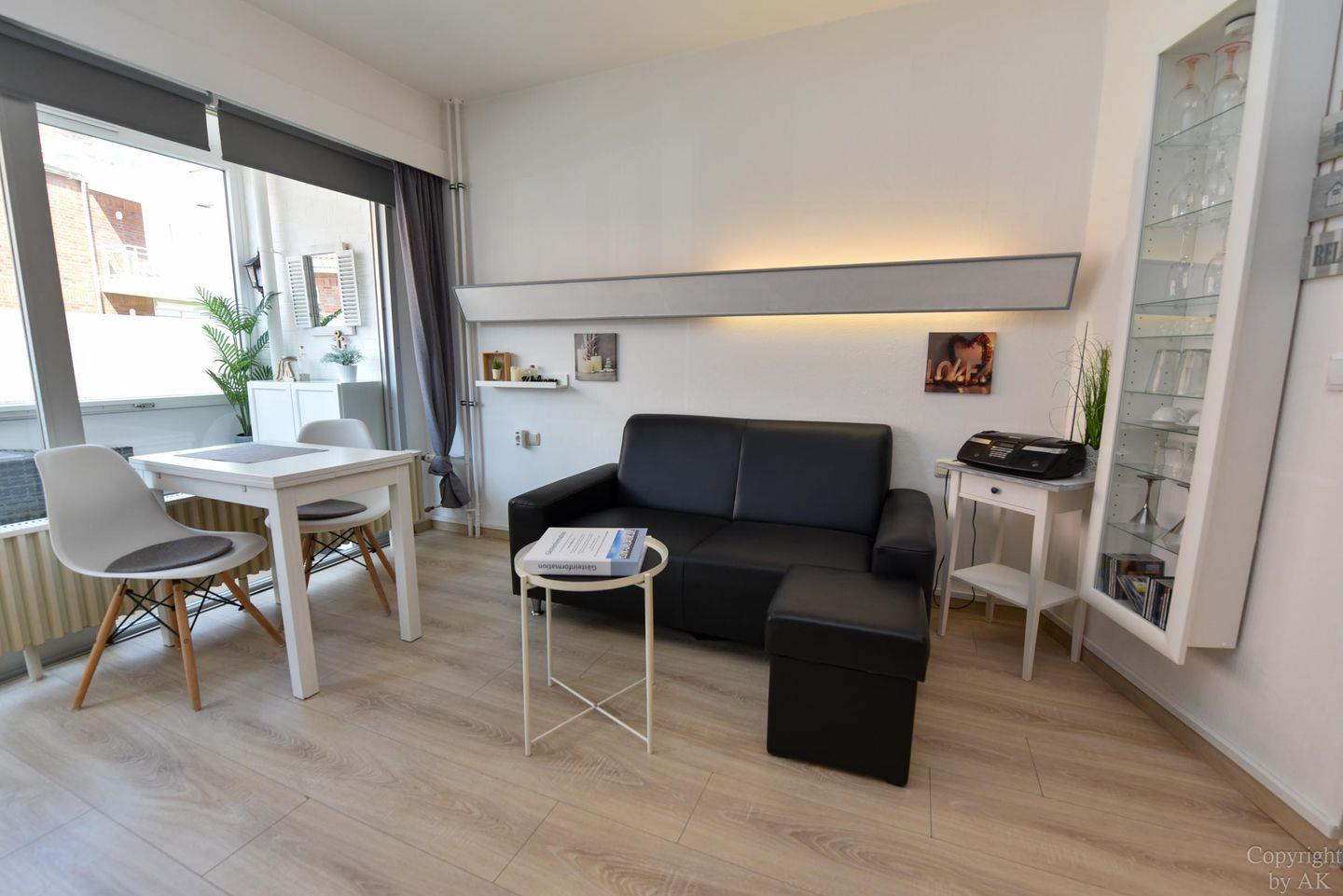 Moderne 1-Raum-Ferienwohnung "Seehütte 05" mit seitlichem Meerblick, direkt am Strand von Duhnen und nahe Thalasso Ahoi Bad.