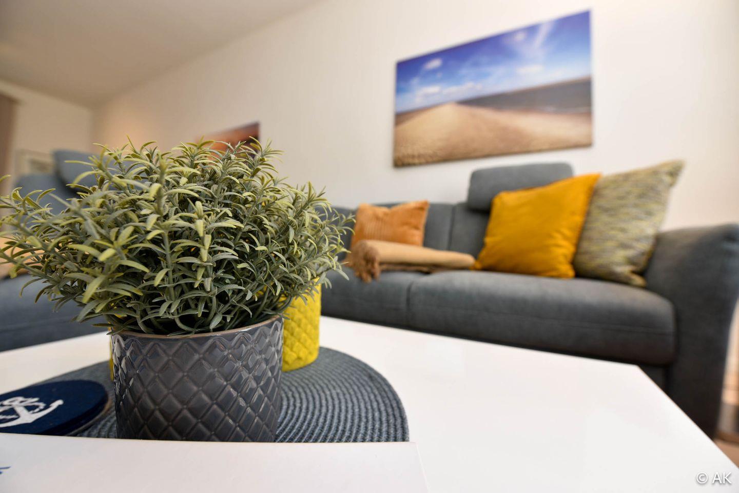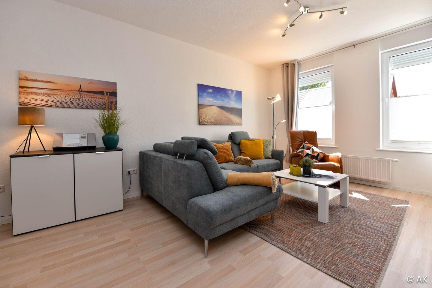 Gemütliches 2-Zimmer-Ferienwohnung im Erdgeschoss des Hauses 4 Muscheln in Cuxhaven-Duhnen. Mit Wohnküche, Doppelbett, WLAN, Parkplatz und bodentiefer Dusche – strandnah und zentral nahe dem Wattenmeer gelegen.