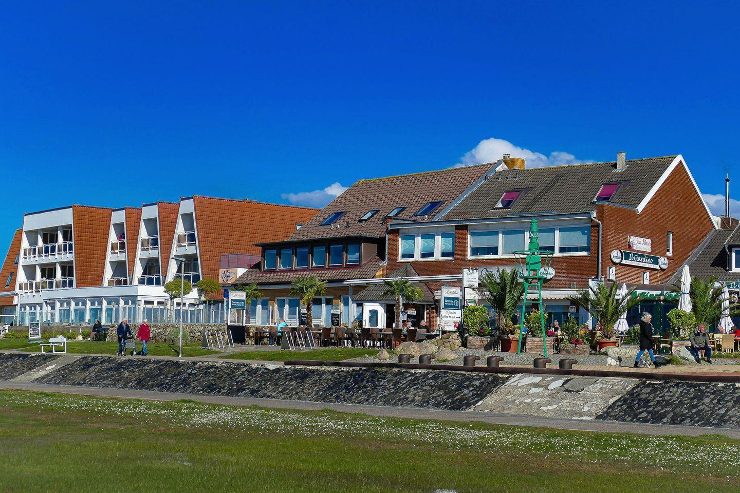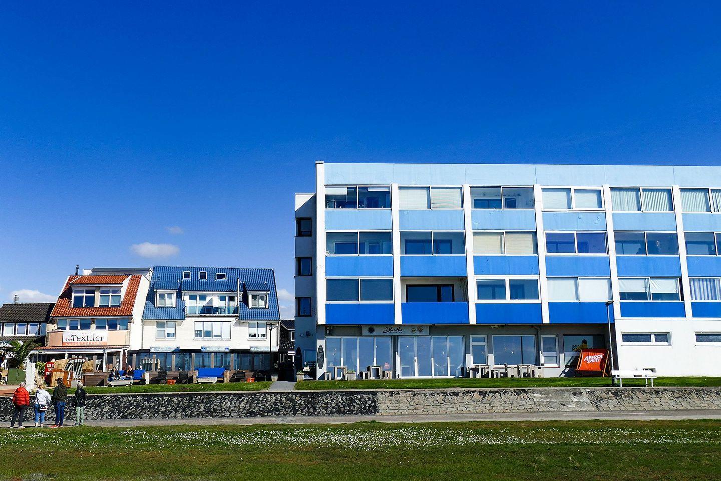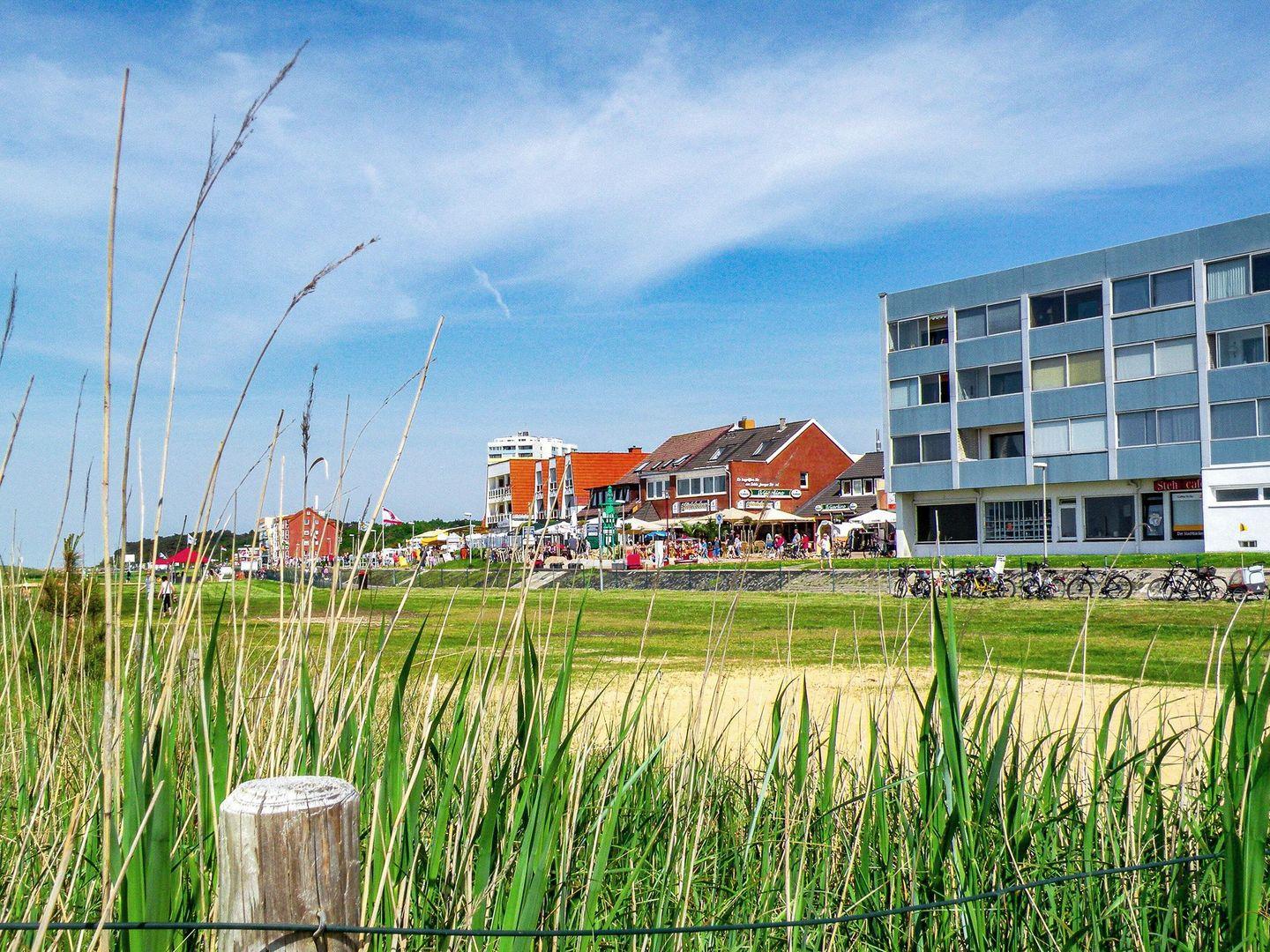 Die Ferienwohnung HD04 im Haus Seehund liegt direkt an der Strandpromenade von Cuxhaven-Sahlenburg – mit freiem Blick auf das Meer und die Insel Neuwerk.