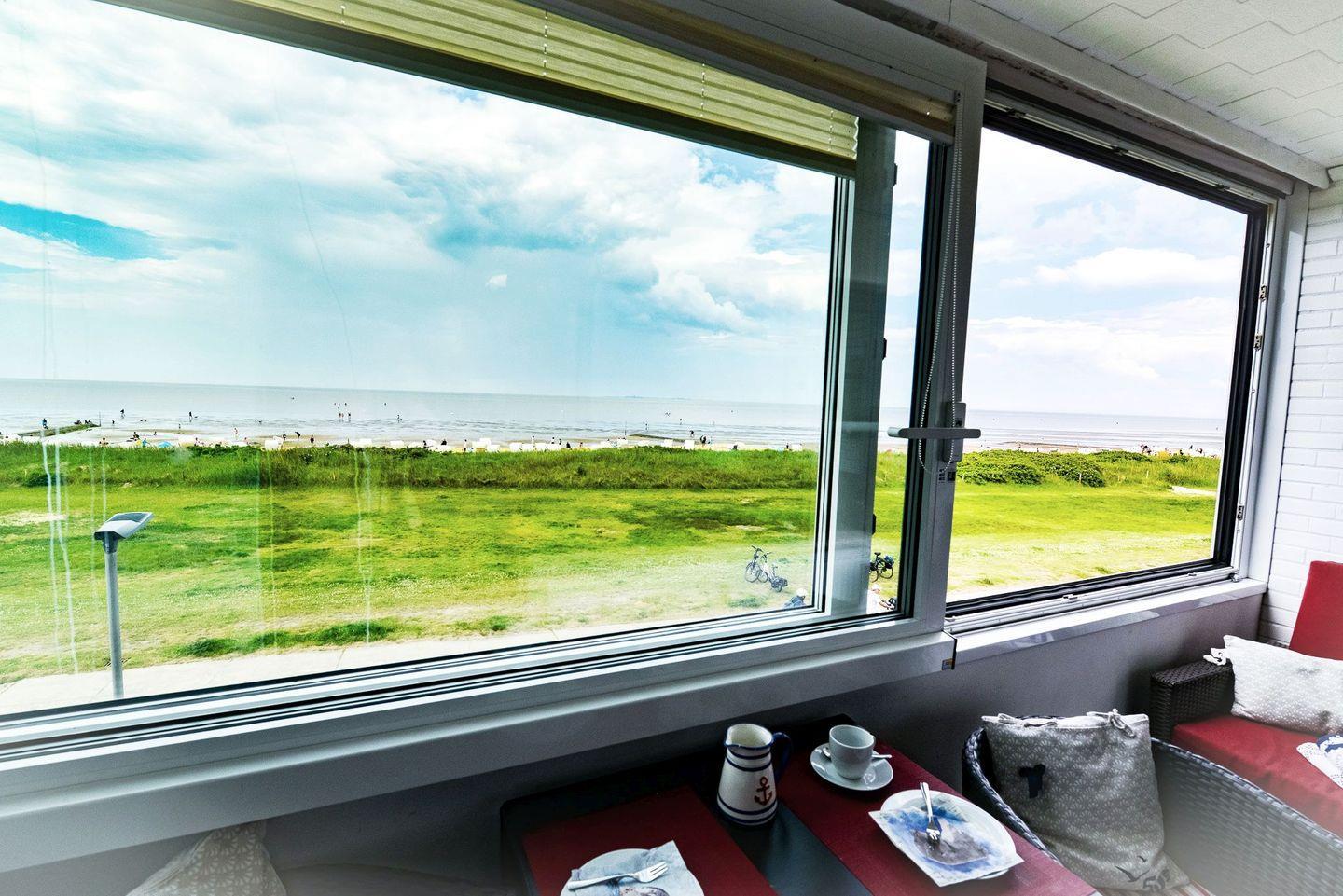 Ferienwohnung HD04 im Haus Seehund bietet traumhaften Meerblick und verglasten Balkon direkt an der Strandpromenade von Sahlenburg.