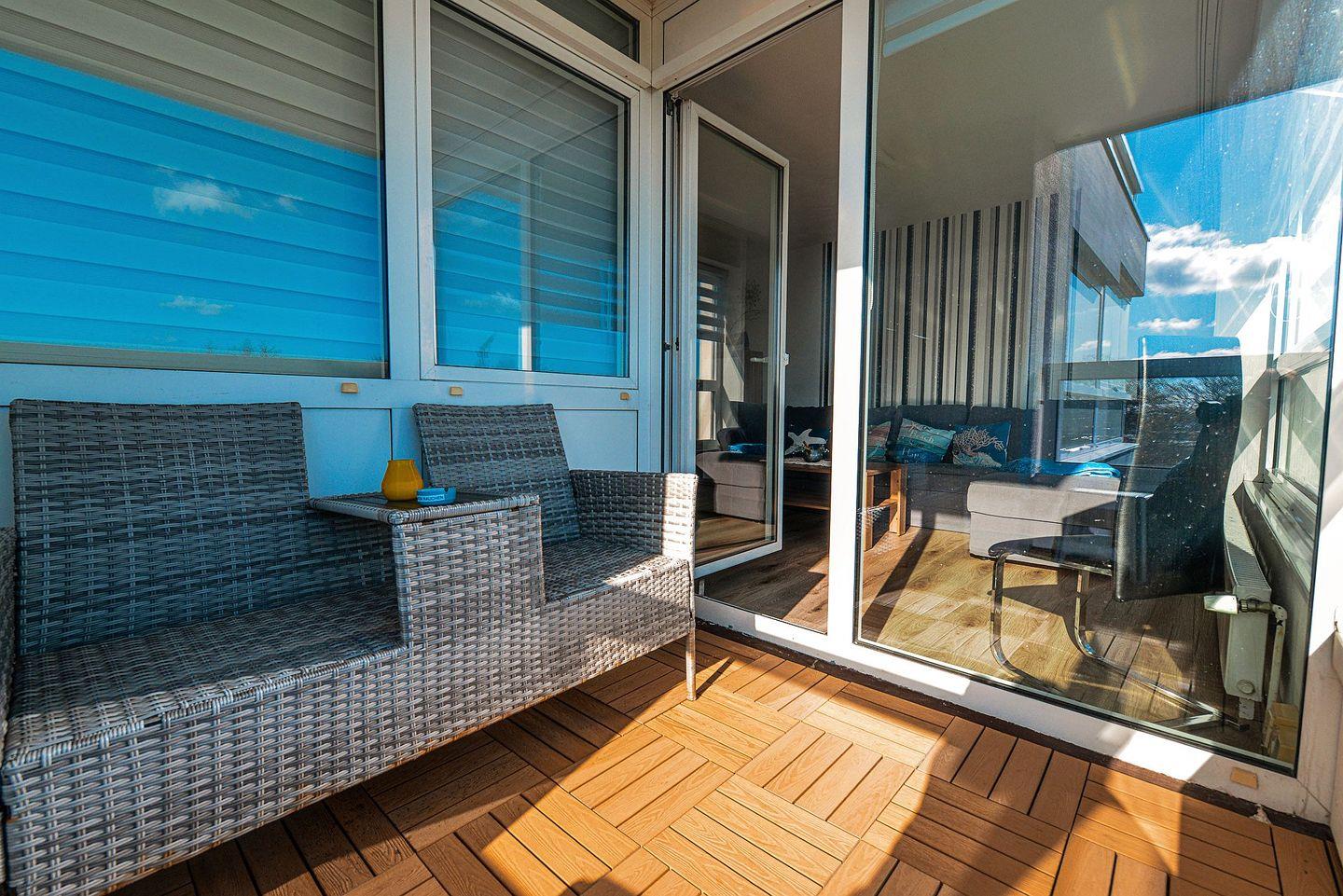 Moderne Ferienwohnung in Cuxhaven-Sahlenburg, nur 150 m vom Strand, mit Schwimmbad, Sauna und Balkon.