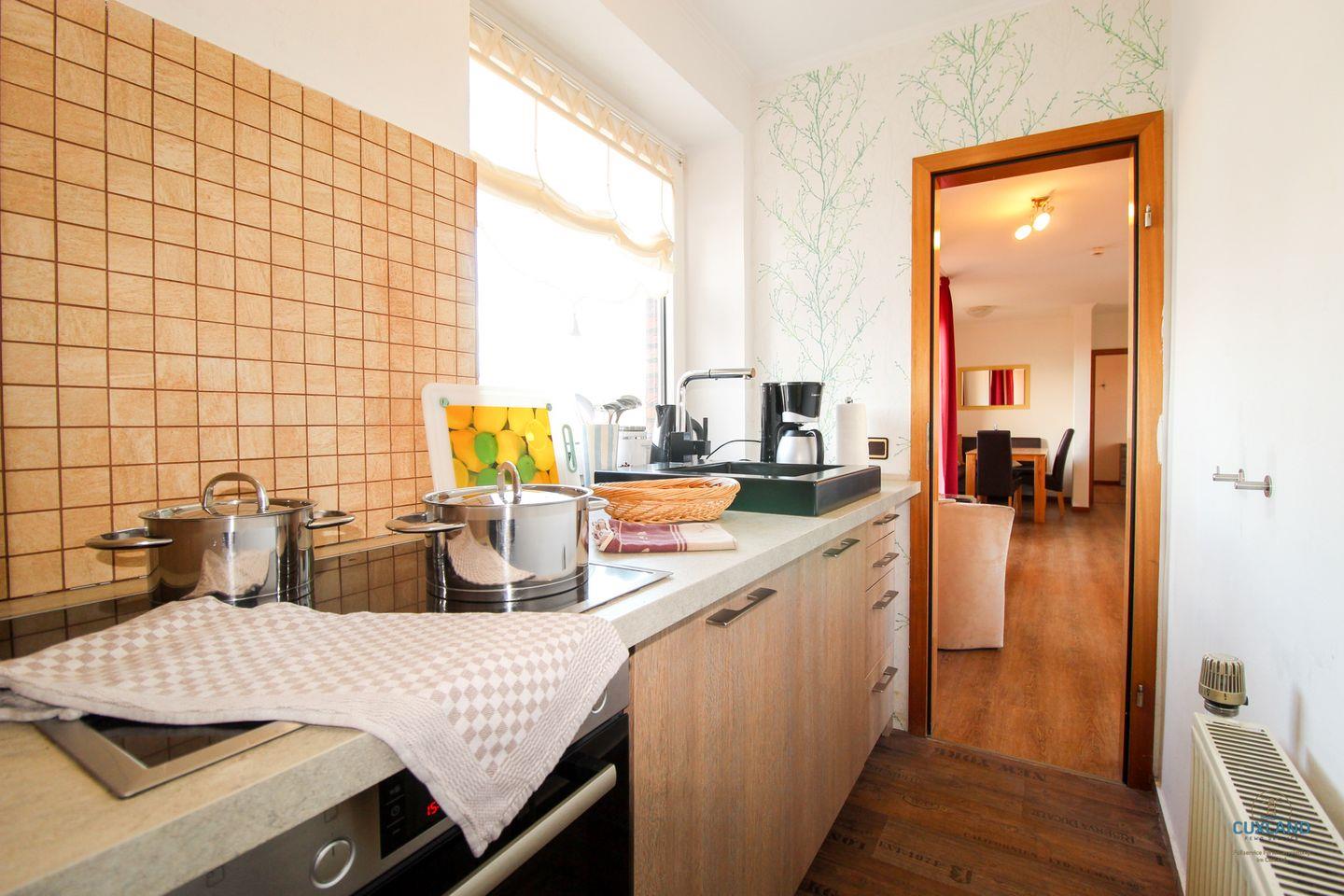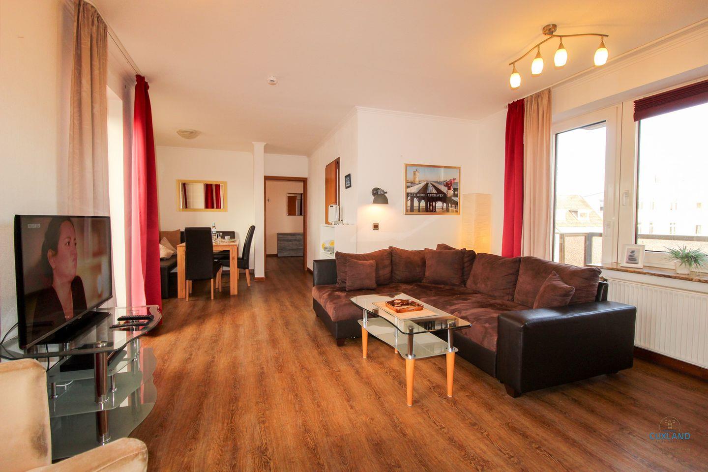Gemütliche Familienwohnung in Cuxhaven-Döse mit zwei Balkonen, moderner Küche und kostenfreiem WLAN, nur 830 m vom Strand entfernt.