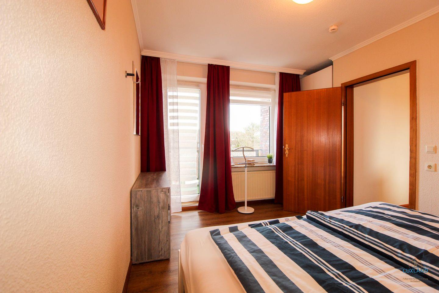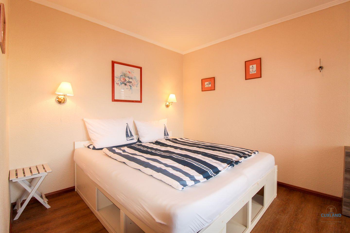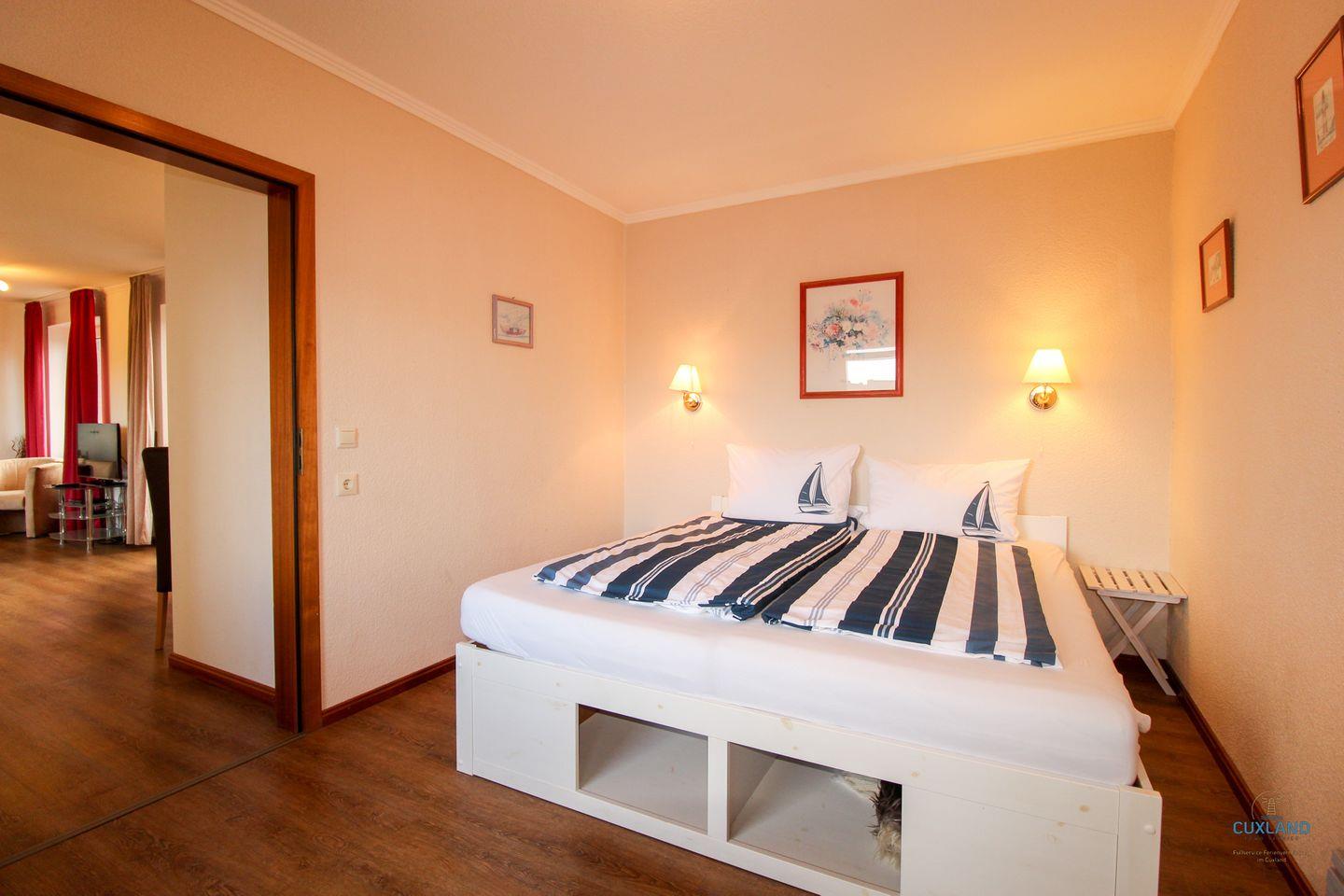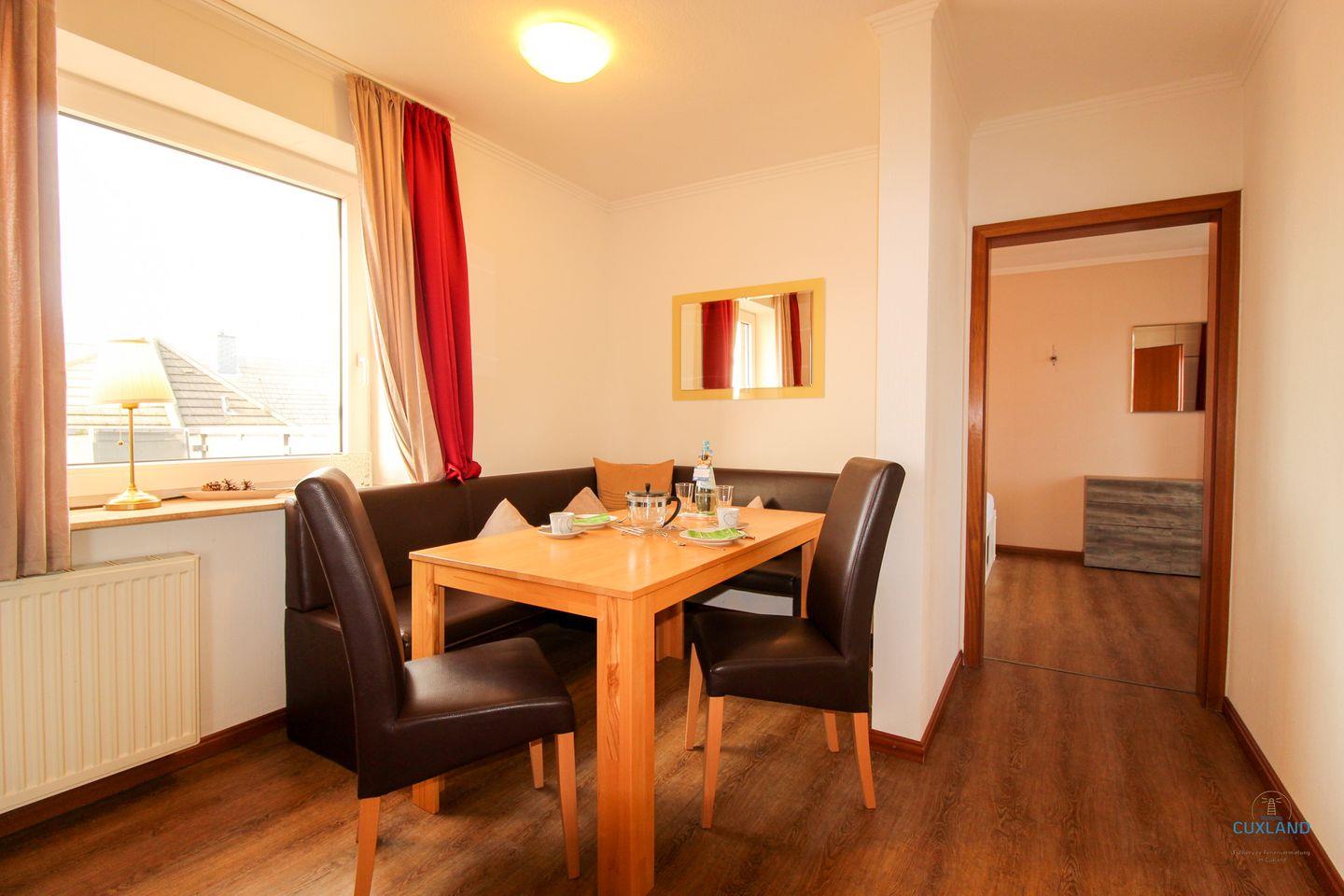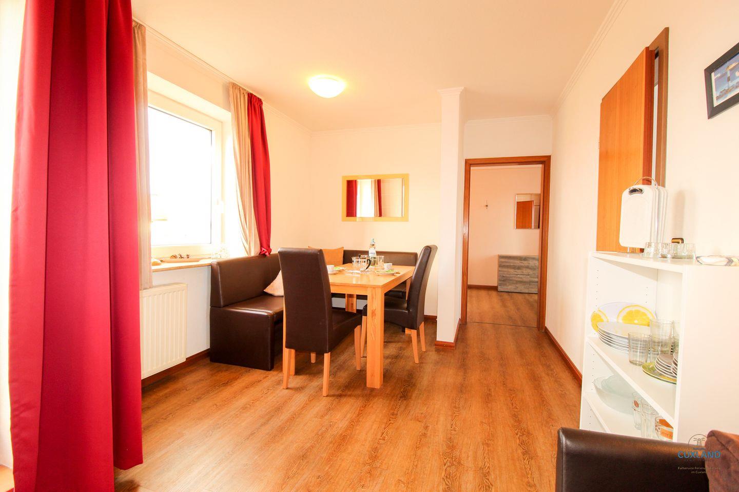 Diese 65qm große Wohnung liegt in der 2. Etage des Haus Elbe und befindet sich somit im Herzen des Kurteils Döse. Hier ist alles für einen großartigen Aufenthalt mit der Familie vorbereitet. Die Wohnung bietet bis zu vier Personen Platz und ist entsprechend ausgestattet. Wie z.B. mit einem gemütlichen Essbereich mit Eckbank in der Wohnstube. Von dieser habt ihr auch direkten Zugang zu den zwei großzügigen Balkonen. Diese laden bei schönem Wetter zum Verweilen ein. Das Badezimmer sowie die Küche sind hell und modern ausgestattet. Für die nächtliche Ruhe bietet diese Unterkunft ein separates Schlafzimmer mit Doppelbett sowie ein weiteres mit Einzelbett und eine gemütliche Schlafcouch im Wohnzimmer. Des Weiteren könnt ihr das WLAN und den Parkplatz vor dem Haus kostenfrei nutzen.