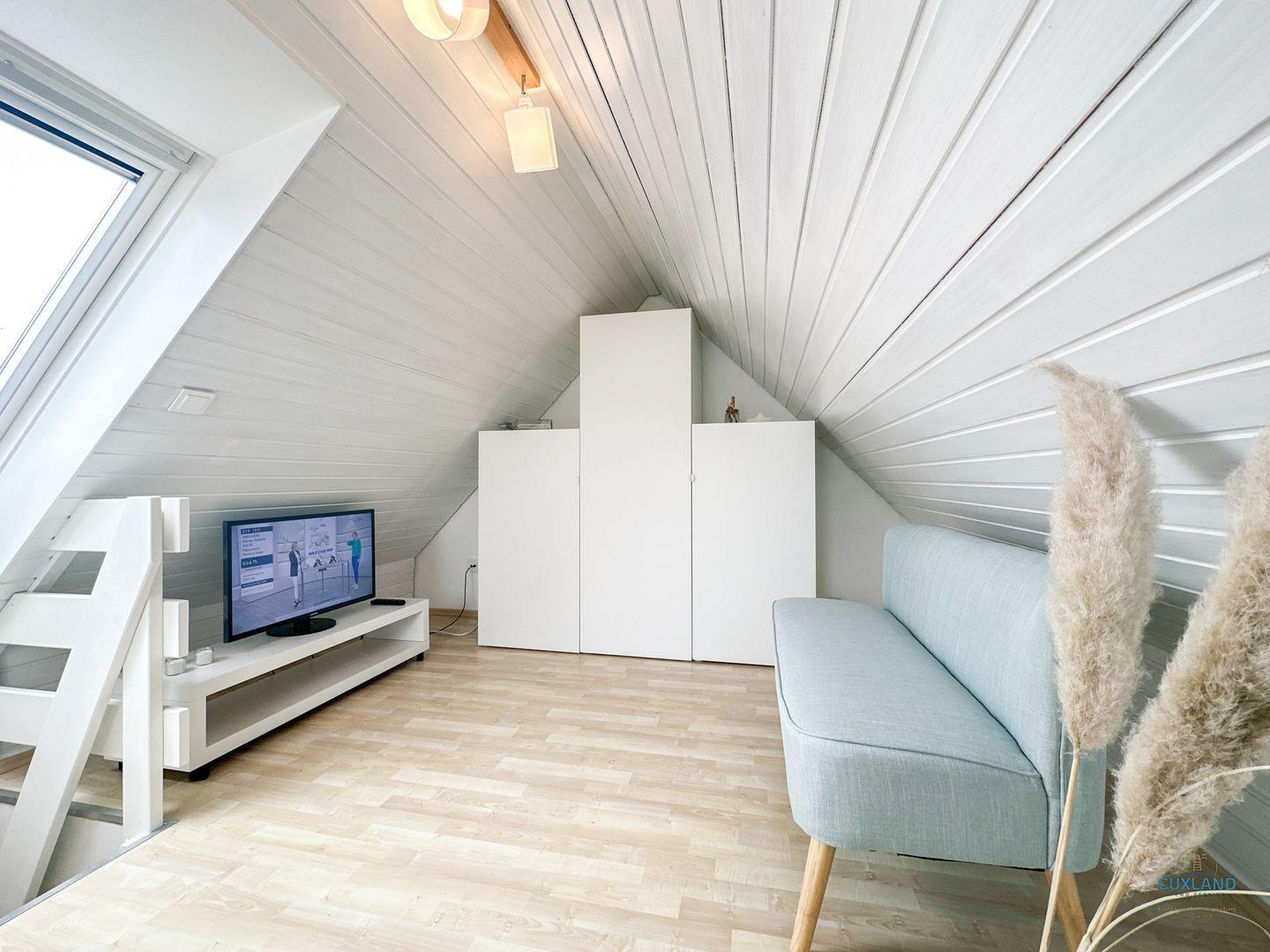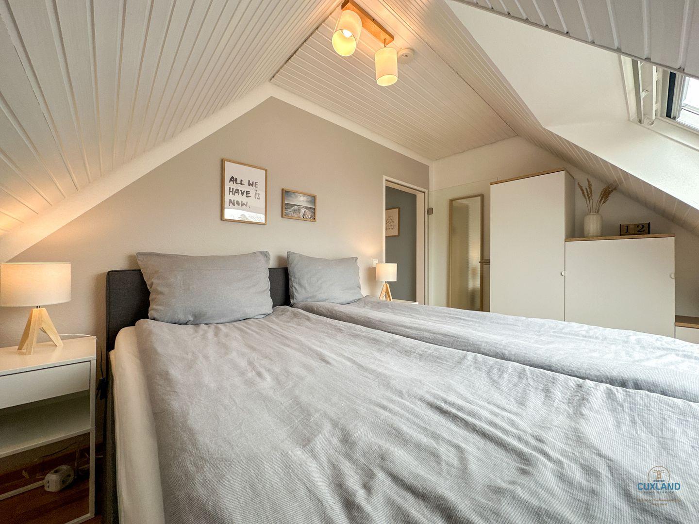 Diese helle und moderne 55qm Wohnung in Duhnen bietet auf zwei Ebenen Platz zum Entspannen. Der Wohnbereich mit Zugang zur Dachterrasse bietet einen Blick bis zum Wattenmeer. Das Hauptschlafzimmer verfügt über ein gemütliches Boxspringbett. Eine komplett ausgestattete Küche und kostenfreies WLAN sind ebenfalls vorhanden. Bitte beachtet, dass die Treppe steil ist und für kleine Kinder nicht geeignet ist. Ein schmaler PKW-Stellplatz ist inklusive.