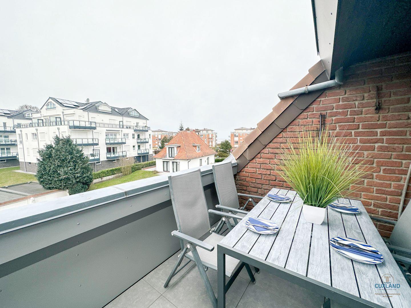 Moderne Maisonettewohnung in Duhnen mit Dachterrasse und Blick aufs Wattenmeer, nahe Strand und Ahoi-Erlebnisbad.