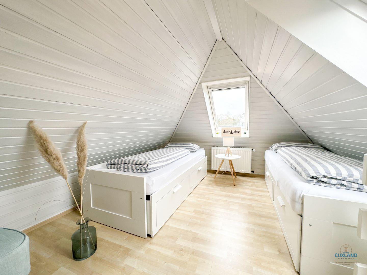 - Obergeschoss mit zwei Einzelbetten und weiterem TV