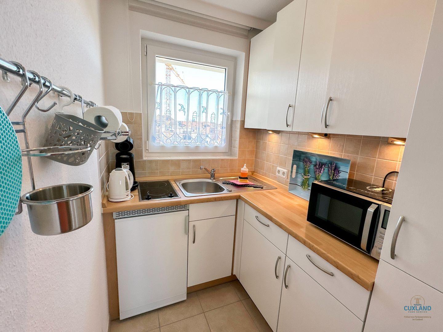 - Separate, kompakte Küche mit allen wichtigen Geräten für die Selbstversorgung