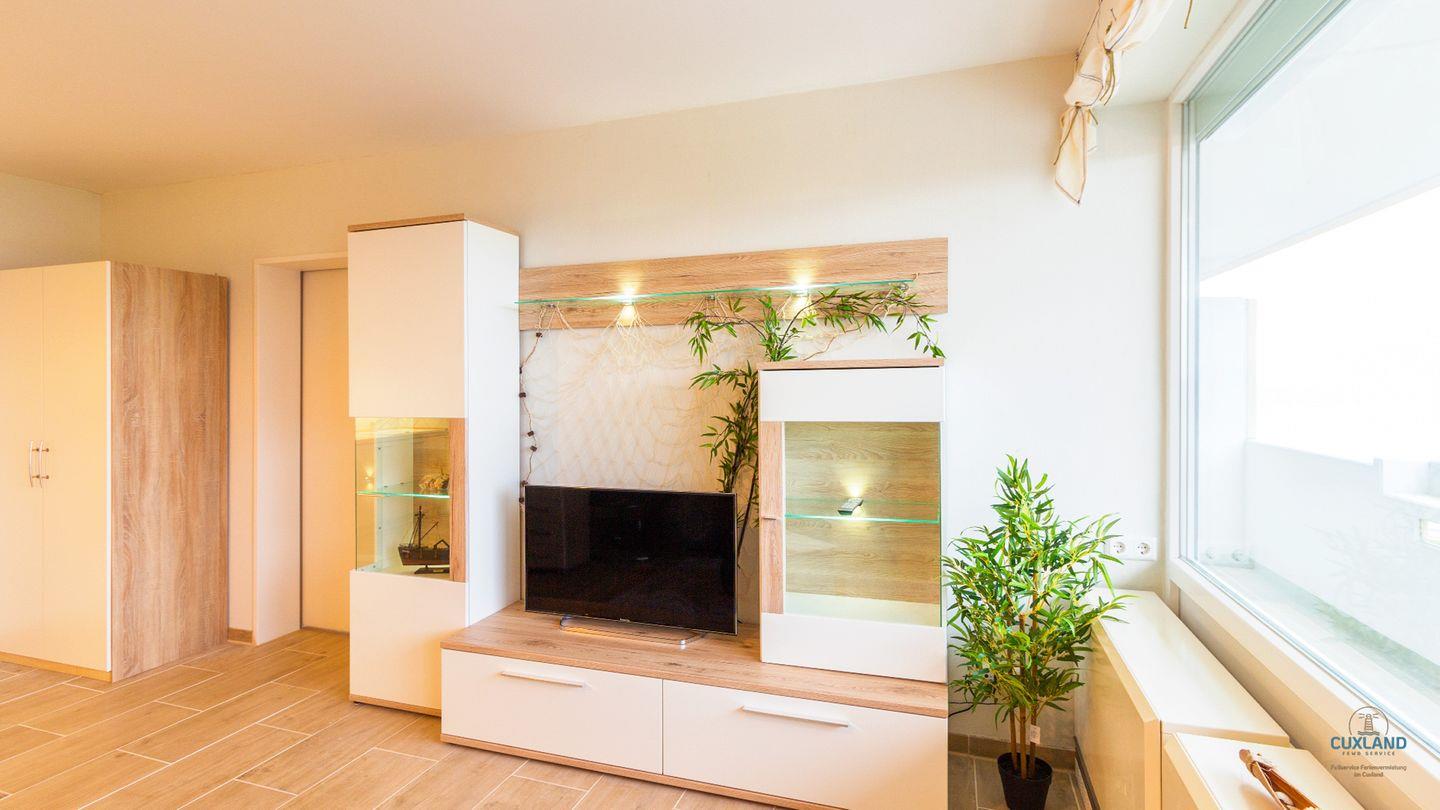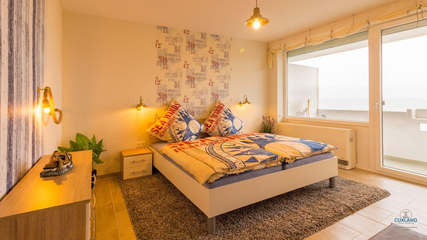 Helles maritimes Apartment mit Nordseeblick, Balkon, Schwimmbad und Sauna in Cuxhaven.