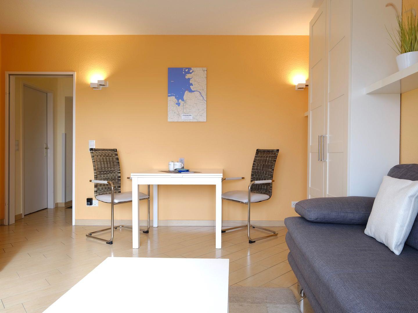 Modernes Appartement mit Balkon und Strandnähe in Cuxhaven-Döse, ideal für entspannte Tage am Meer.