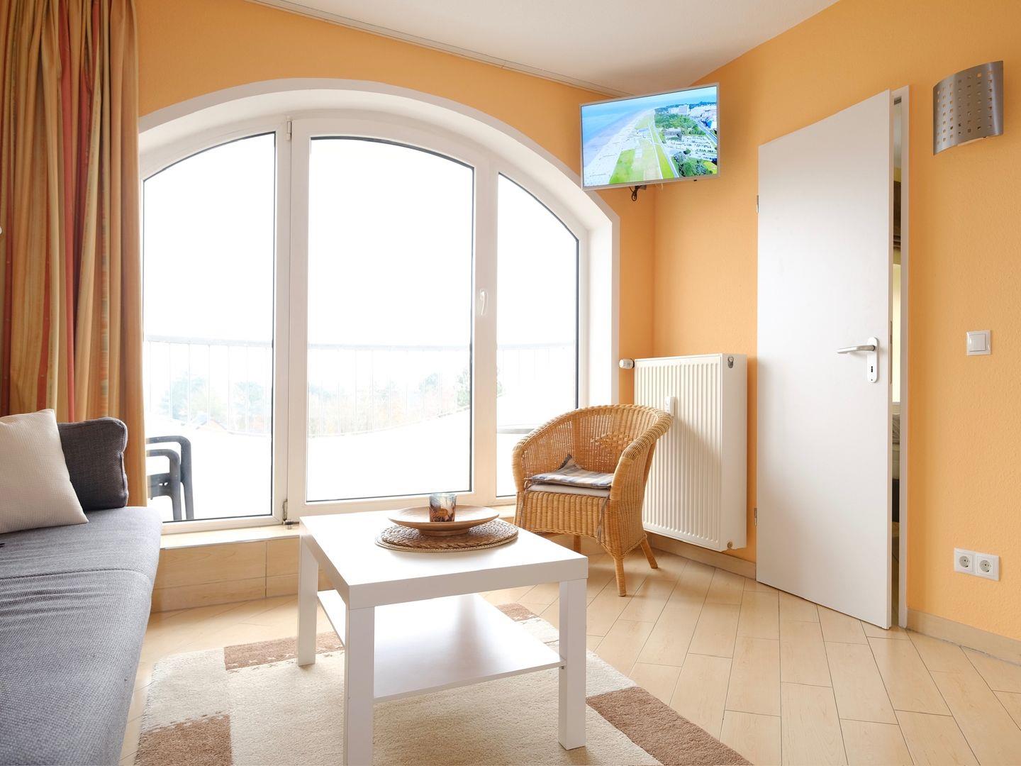 Das schicke 35qm große Appartement im 3. Stock des Haus Deichgraf bietet Hotelcharakter und liegt in direkter Strandnähe. Die moderne Einrichtung umfasst ein Schlafzimmer mit Doppelbett, eine kleine separate Küche und ein Bad. Im Wohnraum befindet sich eine Schlafcouch für eine dritte Person. Der Zugang zum kleinen Balkon mit Gartenblick erfolgt vom Wohnraum aus. Kostenfreies WLAN und ein eigener PKW-Stellplatz auf dem Parkplatz stehen zur Verfügung.