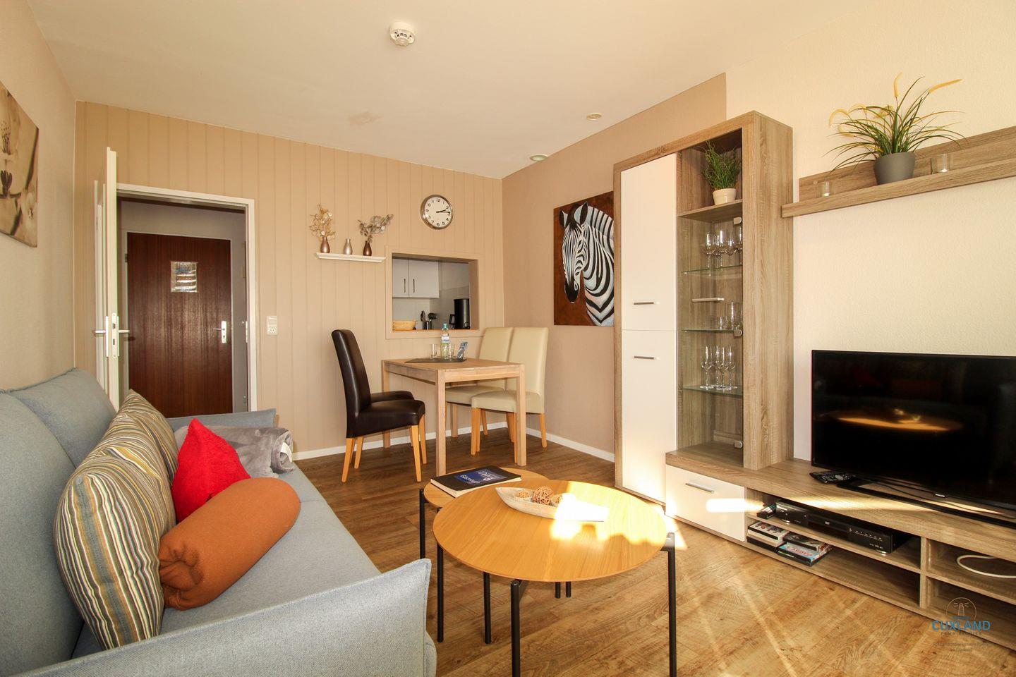 Die 42qm große Ferienwohnung befindet sich im 1. Stock des Haus Elisabeth in Duhnen, bietet Platz für 4 Personen und liegt gegenüber dem Ahoi Erlebnisbad. Der helle Wohn- Essbereich und das gemütliche Schlafzimmer schaffen viel Raum für Entspannung. Das Highlight ist die gemeinschaftliche Dachterrasse mit einzigartiger Aussicht. Ein privater Balkon, kostenloses WLAN, ein Parkplatz, und ein Strandkorb am Duhner Sandstrand stehen zur Verfügung.
