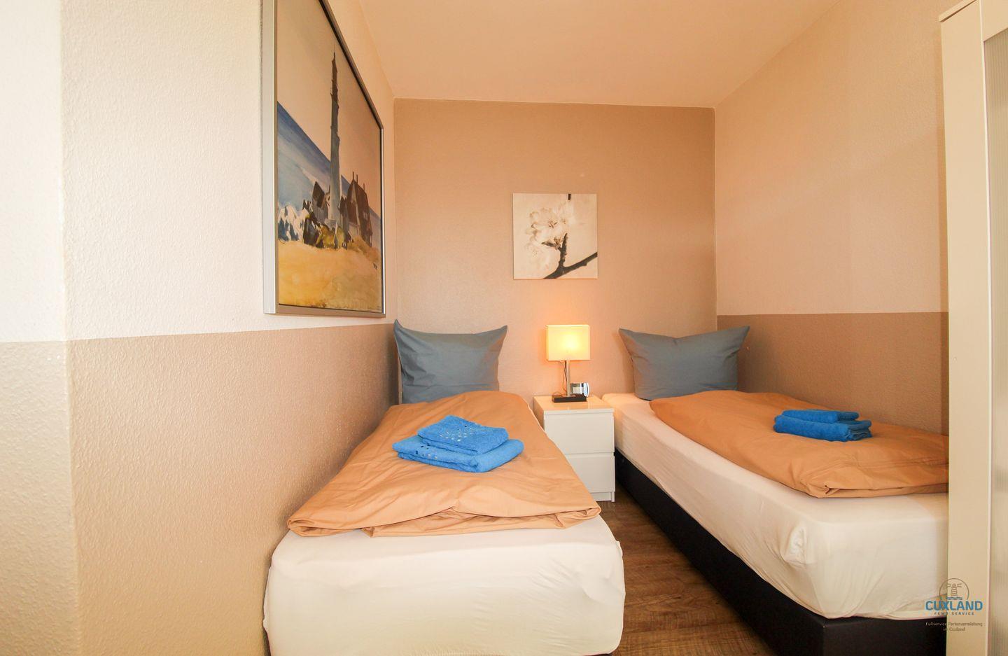 Gemütliche Ferienwohnung im Haus Elisabeth Duhnen mit Dachterrasse und Strandkorb am Sandstrand.