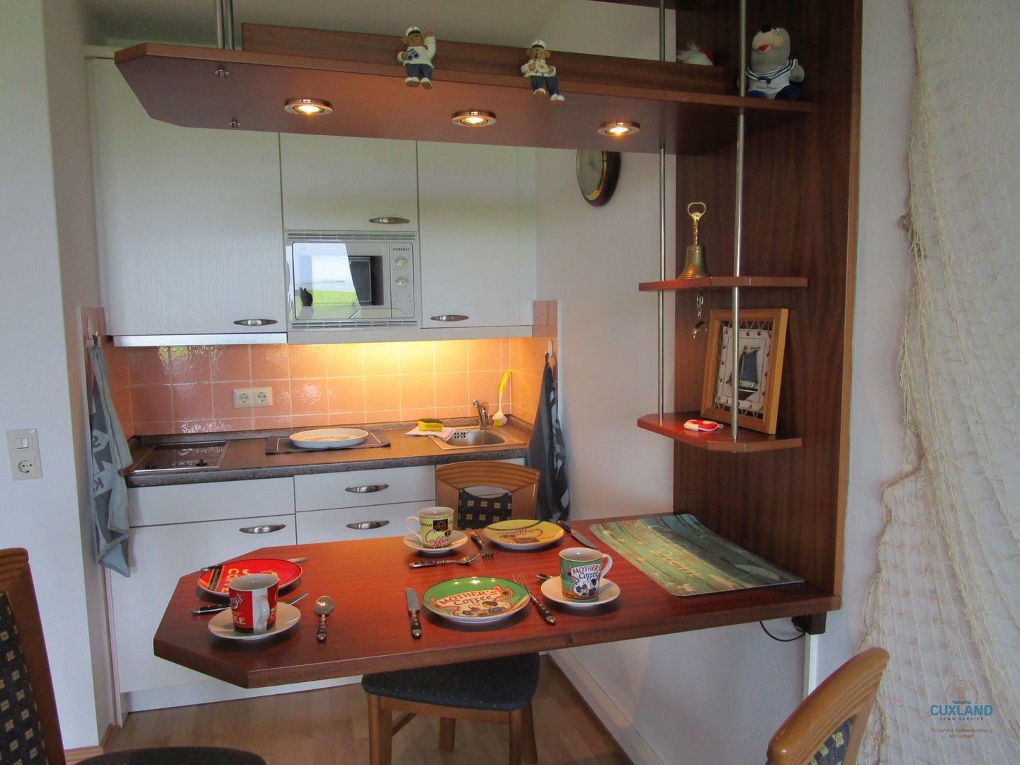 Kochnische. Für frische Nordseeluft steht euch ein Balkon mit Meerblick zur