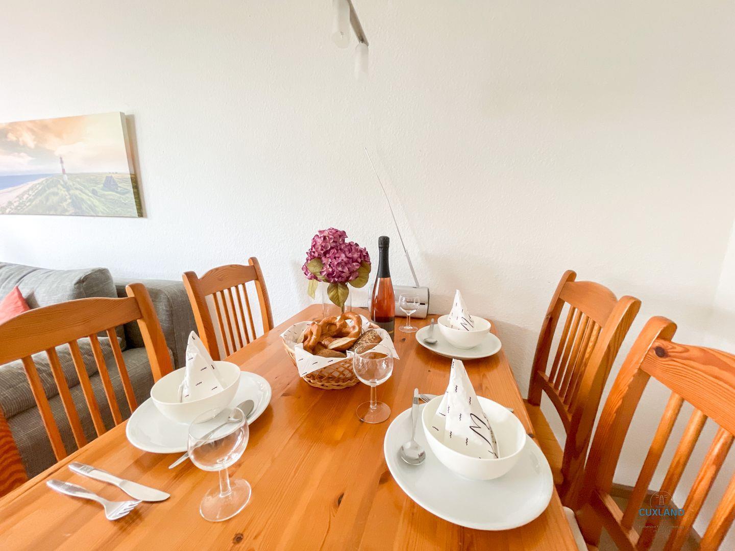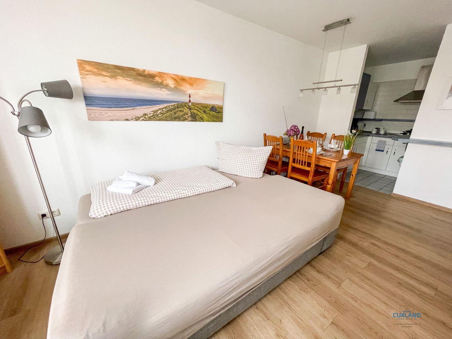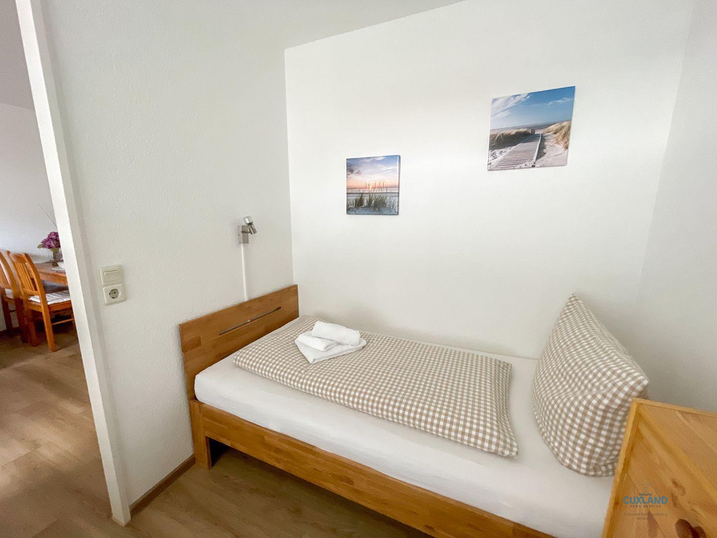 Diese maritime 40qm große Wohnung befindet sich in der 3. Etage der Residenz Hohe Worth. Sie bietet euch ein helles Schlafzimmer mit 2 Einzelbetten und eine Schlafcouch im Wohnzimmer. Ihr könnt hier also mit bis zu 3 Personen einen tollen Urlaub verbringen. Vom