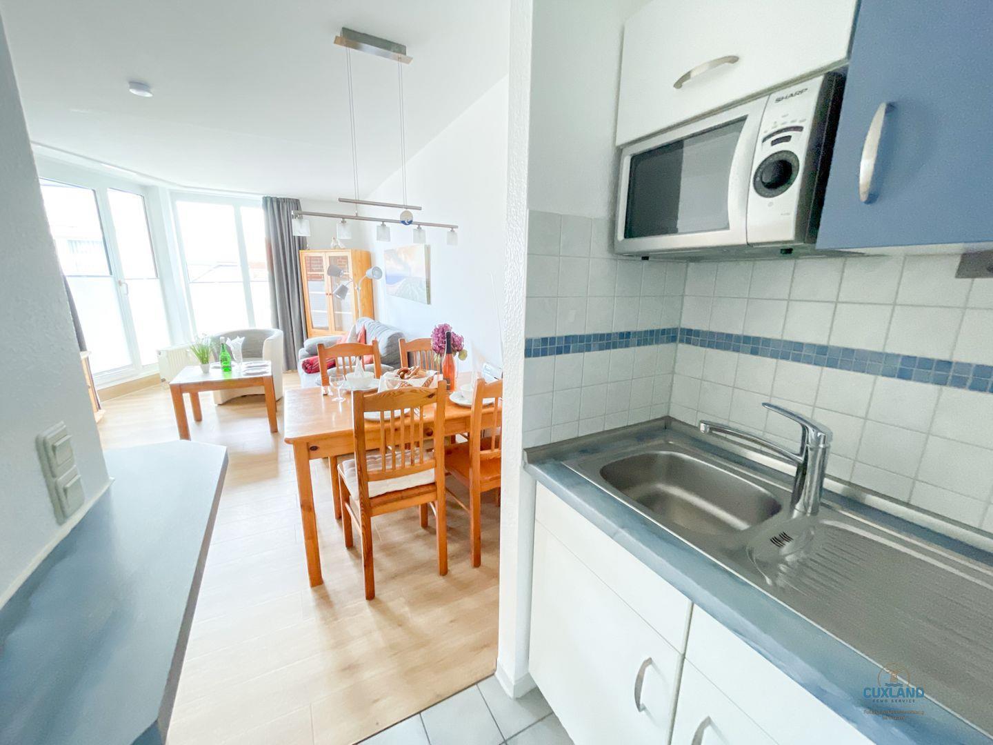 Eine maritime 40qm große Wohnung in der 3. Etage der Residenz Hohe Worth bietet ein helles Schlafzimmer mit 2 Einzelbetten und eine Schlafcouch im Wohnzimmer für bis zu 3 Personen. Vom Wohnzimmer aus gelangt ihr zum Balkon mit Teilseesicht. Das renovierte Bad verfügt über eine ebenerdige Dusche und einen beheizbaren Handtuchhalter. Kostenloses WLAN und ein eigener Tiefgaragenparkplatz sind inklusive