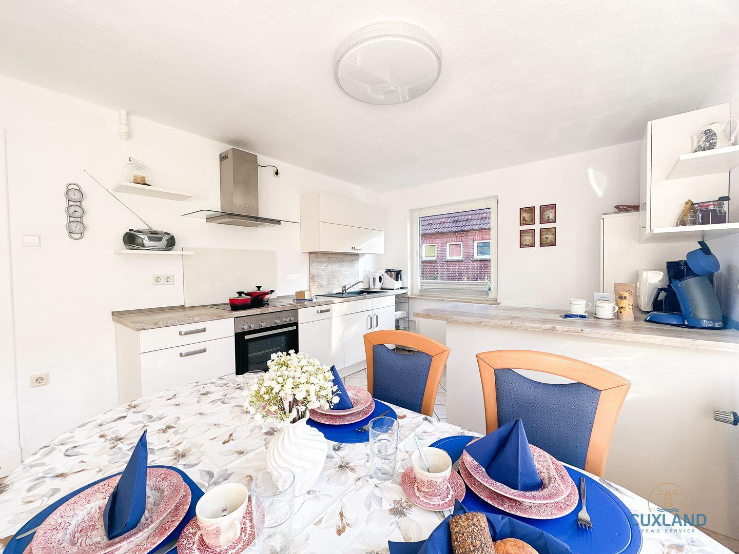 Wohnraum und die große, gut ausgestattete Küche sowie ein Essbereich. Imkompletten Haus genießt Ihr natürlich auch kostenfreies W-LAN. Im Wohnzimmer gibt es eine gemütliche Sitzgruppe und einen zusätzlichen Esstisch.