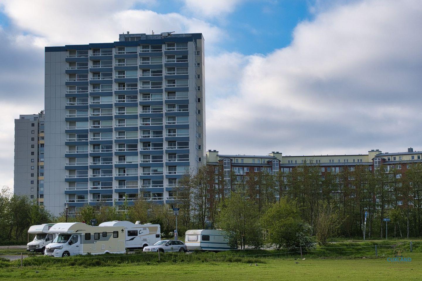 Das 42qm Apartment im Haus Frische Brise bietet alles für einen entspannten Urlaub zu dritt. Das Schlafzimmer verfügt über ein gemütliches Doppelbett, während die dritte Person auf der Schlafcouch im Wohnzimmer unterkommt. Die Bodentiefen Fenster und der Balkon gewähren eine großartige Aussicht auf das Wattenmeer und die Insel Neuwerk. Die 8. Etage-Wohnung bietet kostenloses WLAN und einen Parkplatz.