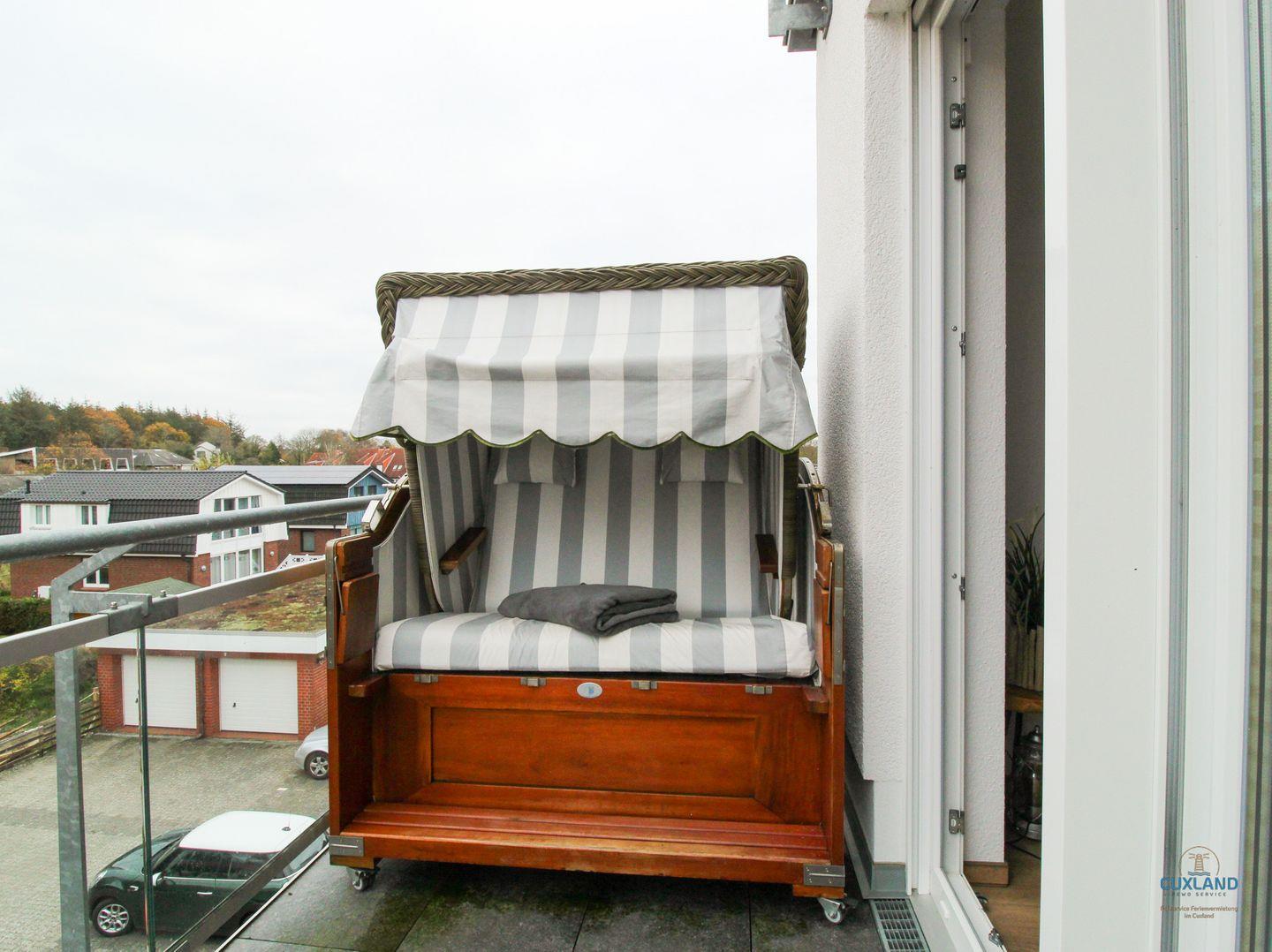 ebenfalls den Ostbalkon, mit eigenem Strandkorb für gemütliche Stunden und