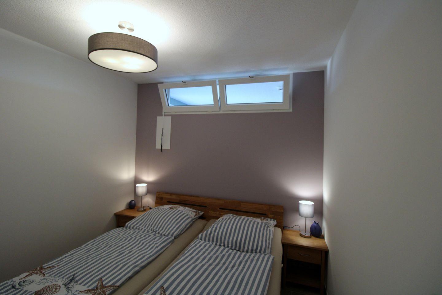 Die Wohnung verfügt über ein separates Schlafzimmer mit Doppelbett (2 × 90 cm x 200 cm) und komfortablen Federkernmatratzen. Im Wohnraum steht zusätzlich ein ausziehbares Schlafsofa (Liegefläche ca. 1,30 x 2,00 m) zur Verfügung. Dieses eignet sich eher für Gäste, die weich liegen möchten.