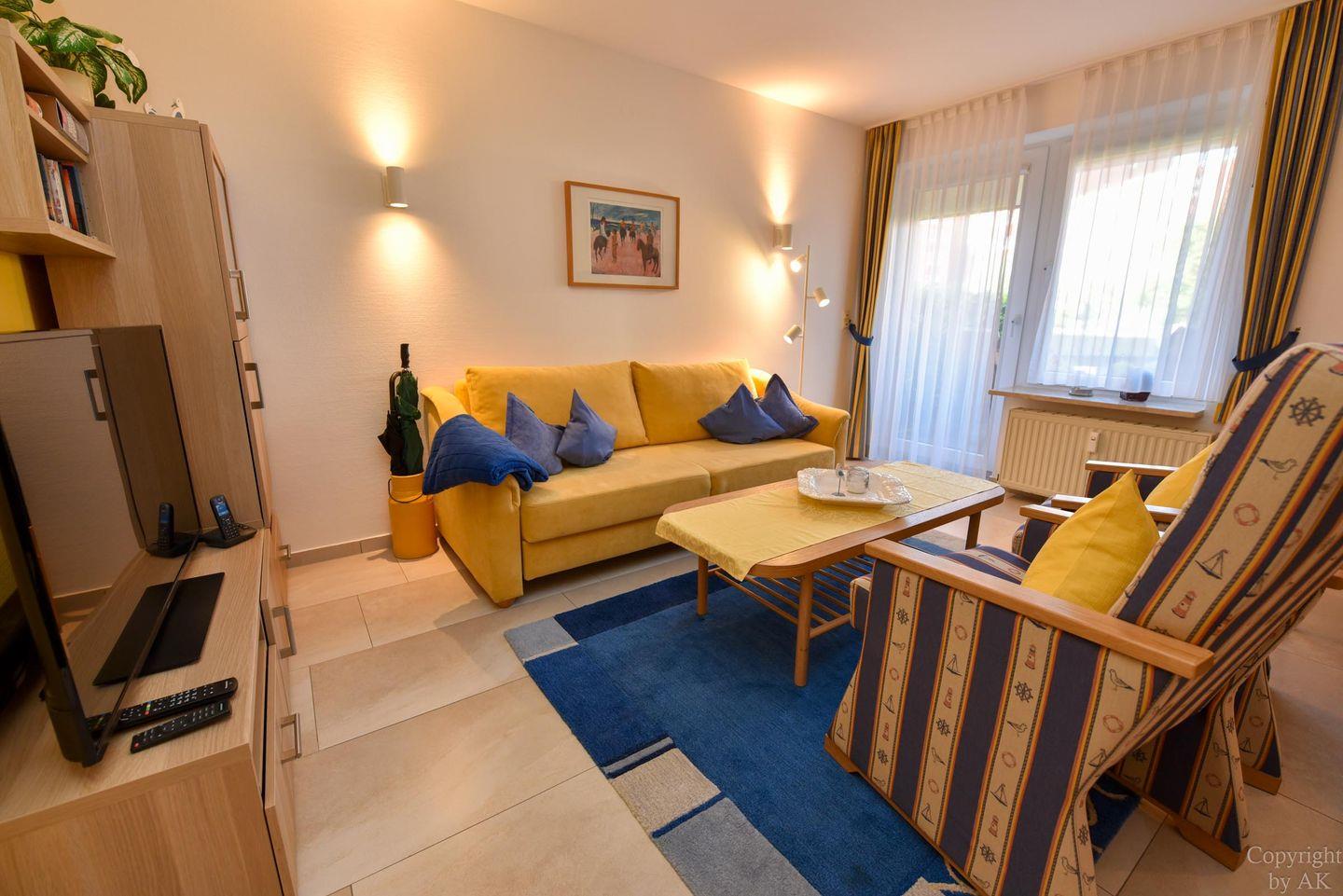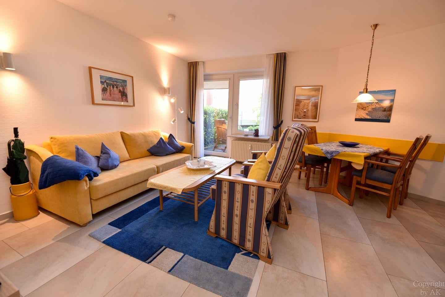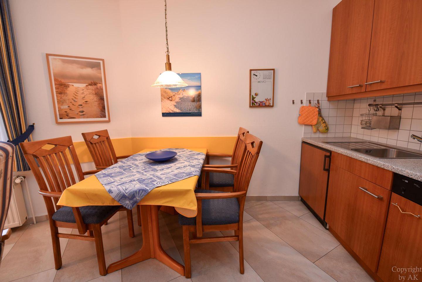 Entdecken Sie dieses 2-Zimmer-Apartment im Erdgeschoss der Residenz KORMORAN, das Ihnen eine komfortable und funktionale Unterkunft in strandnähe bietet. Genießen Sie den offenen Wohn- und Essbereich mit einem praktischen Schlafsofa (120 x 200 cm), das sich ideal für entspannende Abende eignet oder eine zusätzliche Schlafgelegenheit bietet. Der Essbereich, ausgelegt für bis zu vier Personen, führt direkt in eine voll ausgestattete Küchenzeile – perfekt für alle, die gerne selbst kochen.
