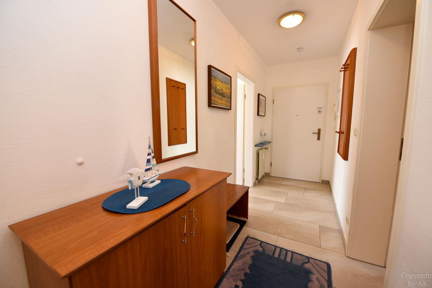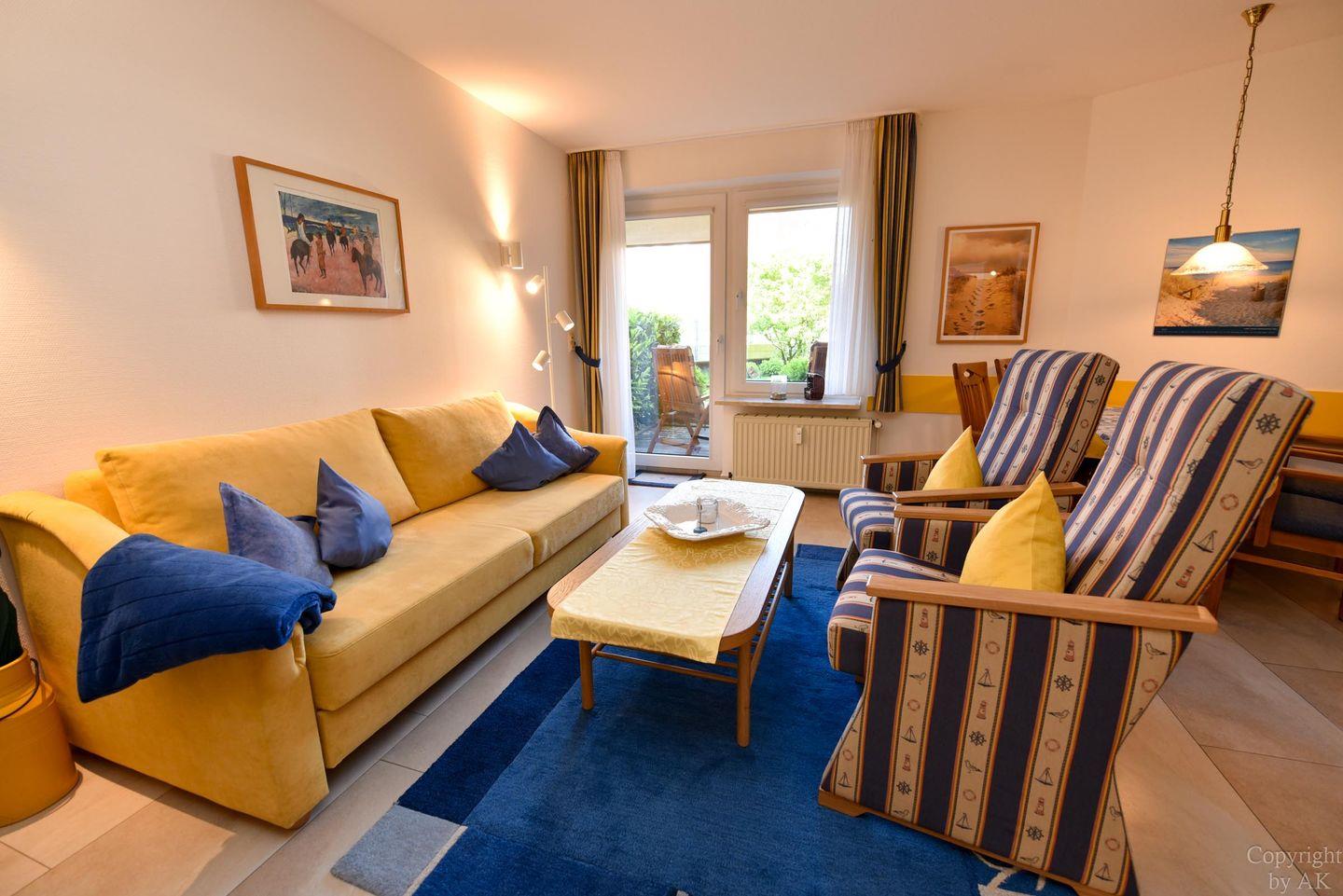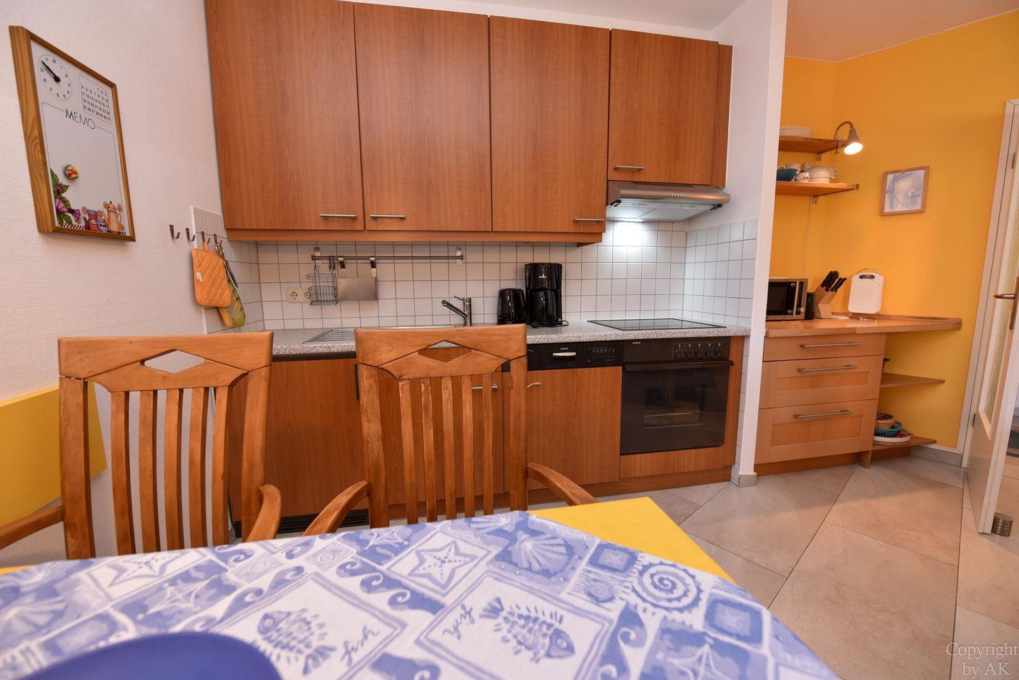 Entdecken Sie dieses 2-Zimmer-Apartment im Erdgeschoss der Residenz KORMORAN, das Ihnen eine komfortable und funktionale Unterkunft in strandnähe bietet. Genießen Sie den offenen Wohn- und Essbereich mit einem praktischen Schlafsofa (120 x 200 cm), das sich ideal für entspannende Abende eignet oder eine zusätzliche Schlafgelegenheit bietet. Der Essbereich, ausgelegt für bis zu vier Personen, führt direkt in eine voll ausgestattete Küchenzeile – perfekt für alle, die gerne selbst kochen.
