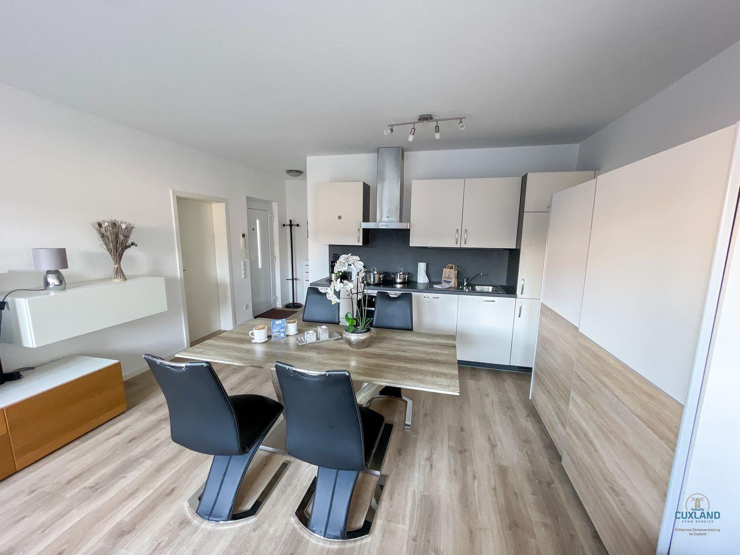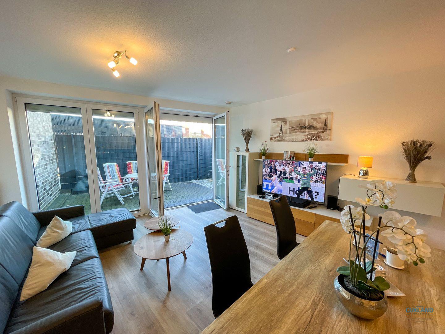 Herzlich willkommen in unserer Ferienwohnung im Herzen von Duhnen! Dieses Apartment bietet Platz für bis zu 4 Personen. Das Schlafzimmer überzeugt mit modernem Design und eigenem Fernseher. Der Wohnraum beherbergt eine komplett ausgestattete Küche, die zum Kochen einlädt, sowie ein großes Esszimmer. Die Schlafcouch im Wohnzimmer bietet zusätzlichen Platz für zwei Personen. Das moderne, großzügige Bad lässt keine Wünsche offen und die sonnige Terrasse bietet eine entspannte Atmosphäre.
