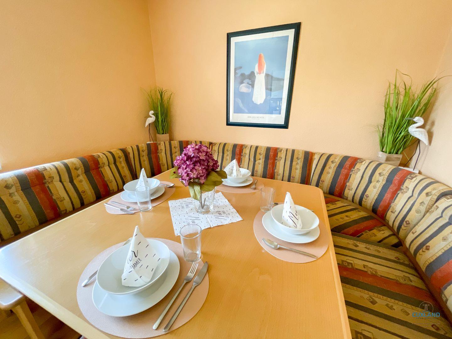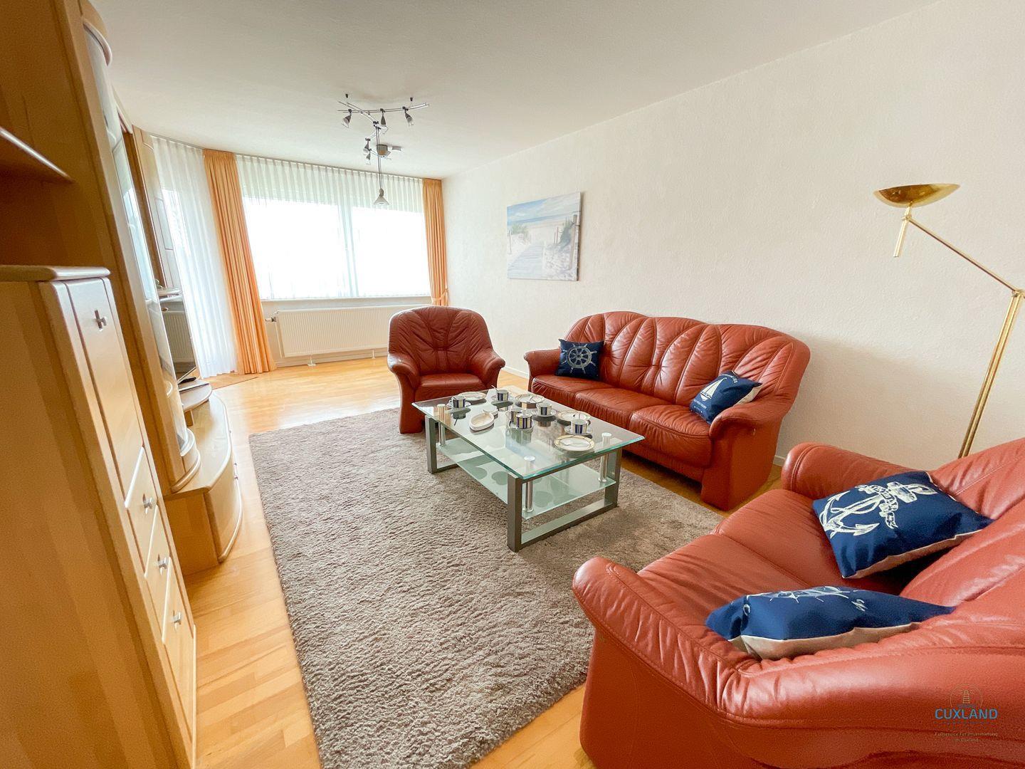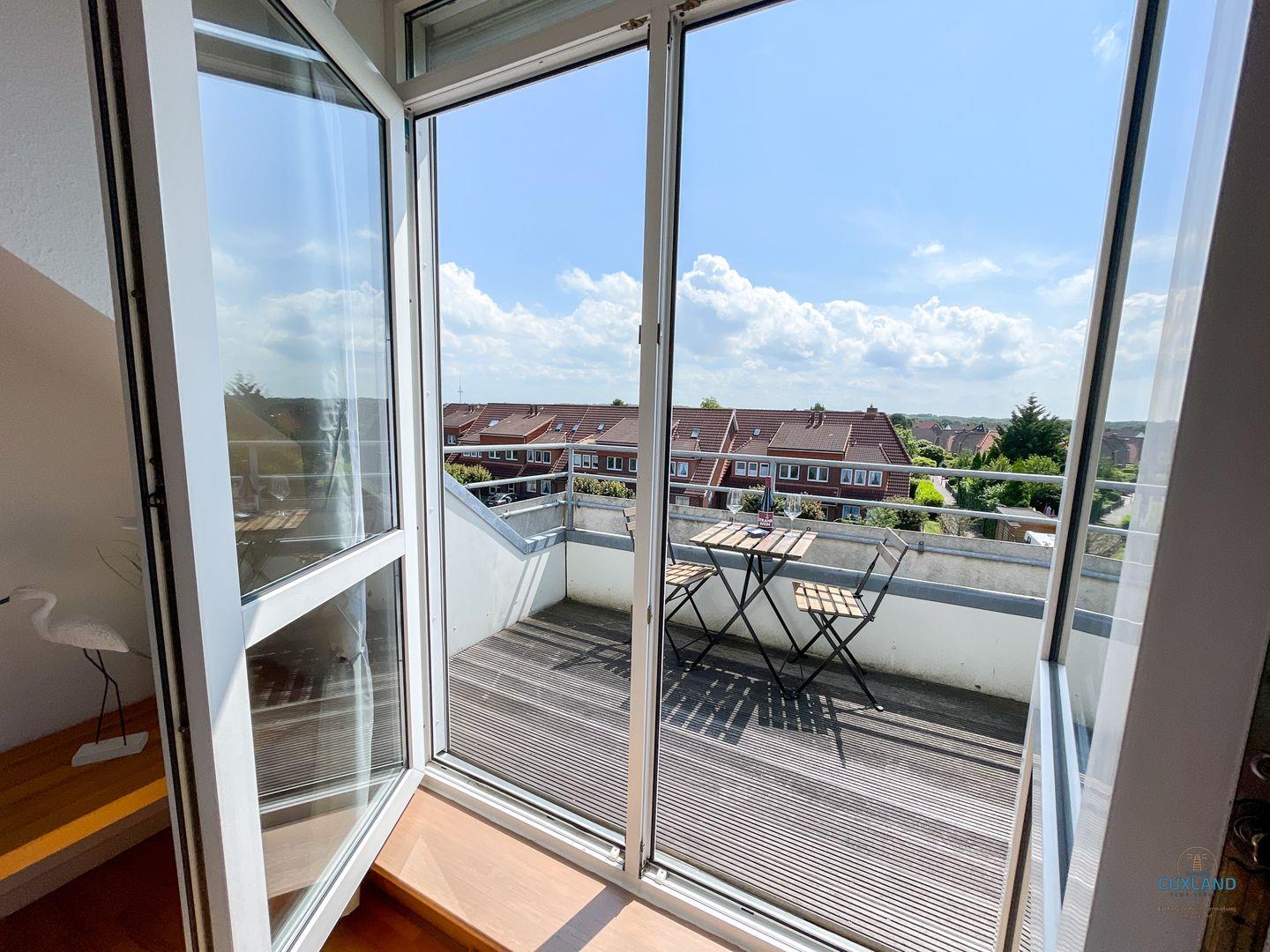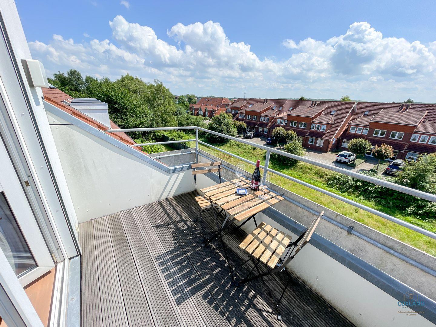 Gemütliche Maisonette-Ferienwohnung in Cuxhaven mit zwei Balkonen, großem Essbereich und Tiefgaragenplatz für erholsamen Familienurlaub.