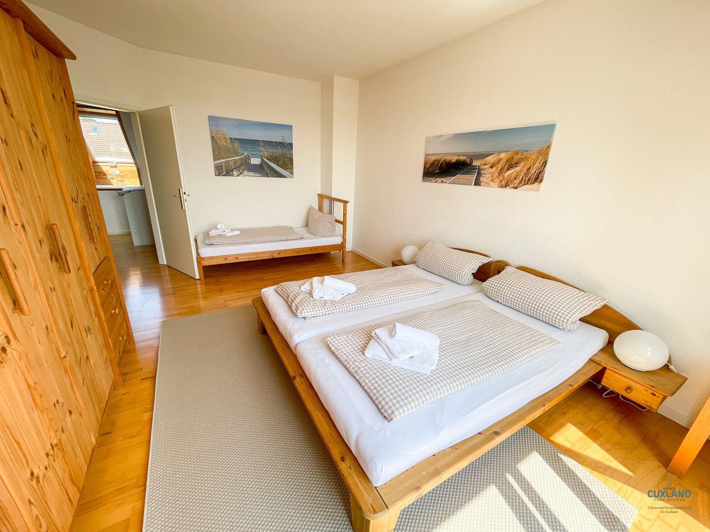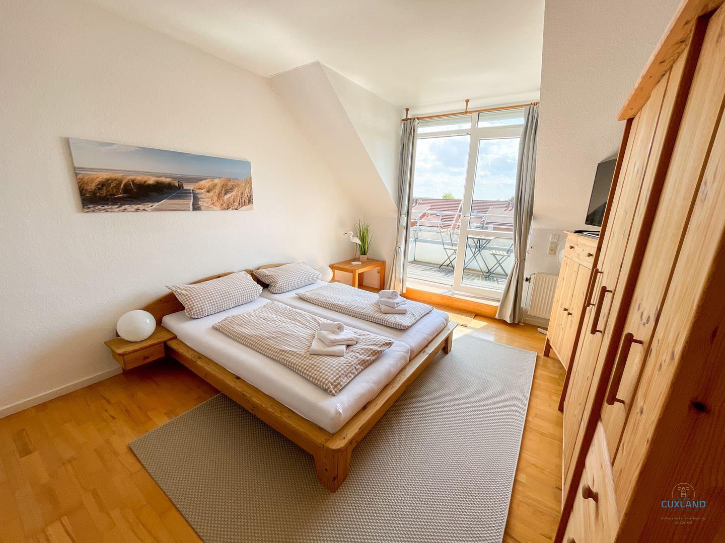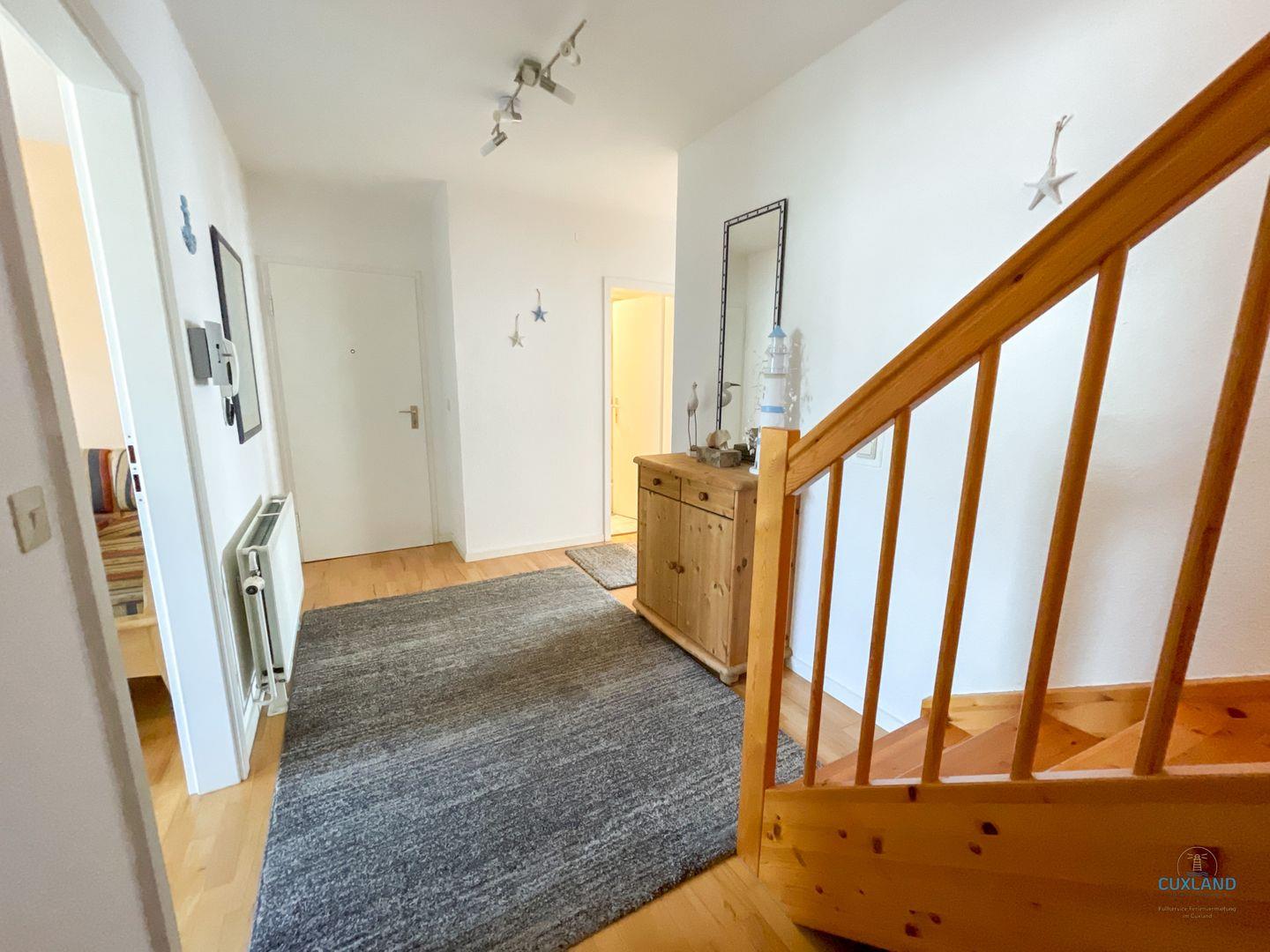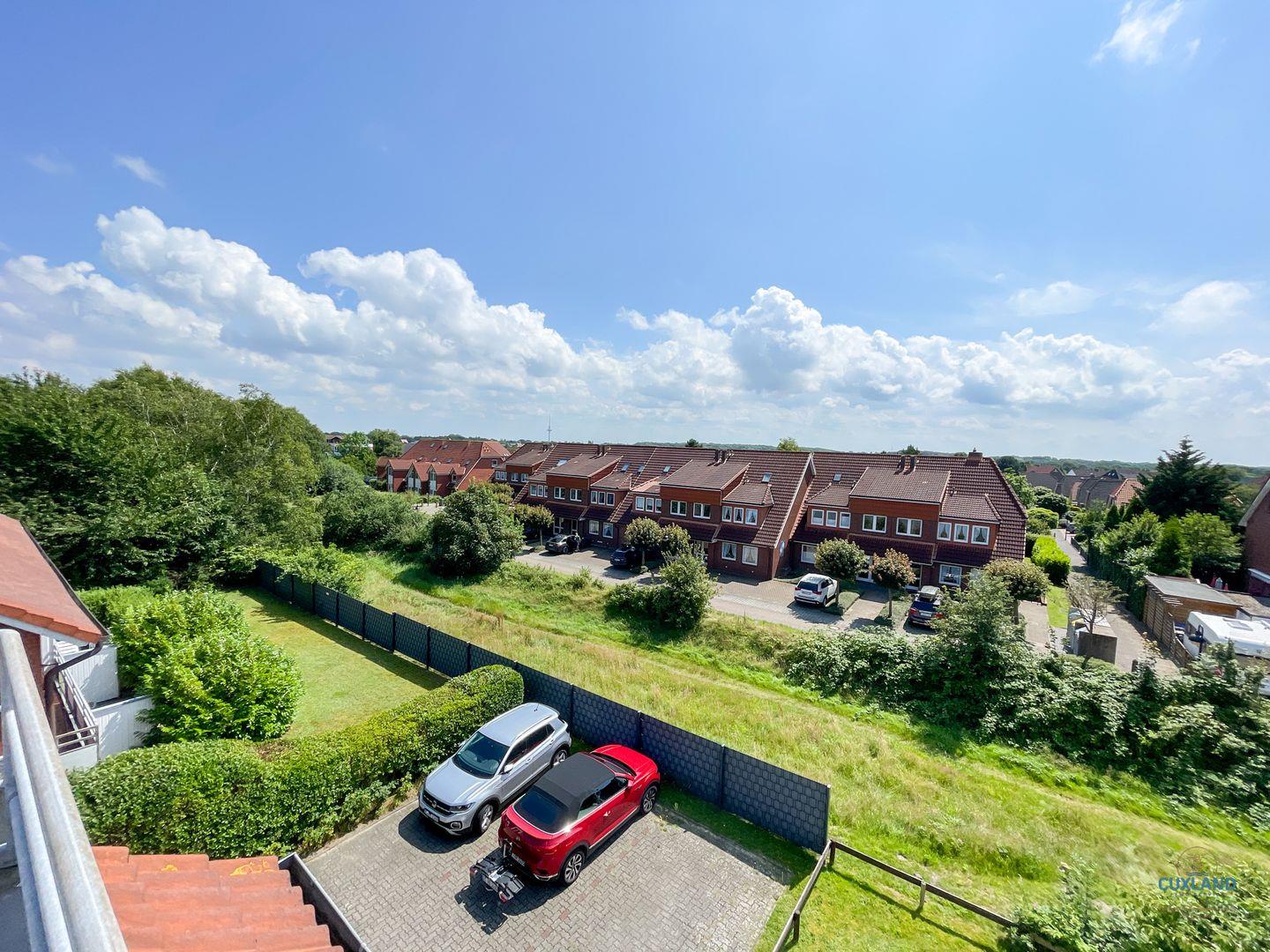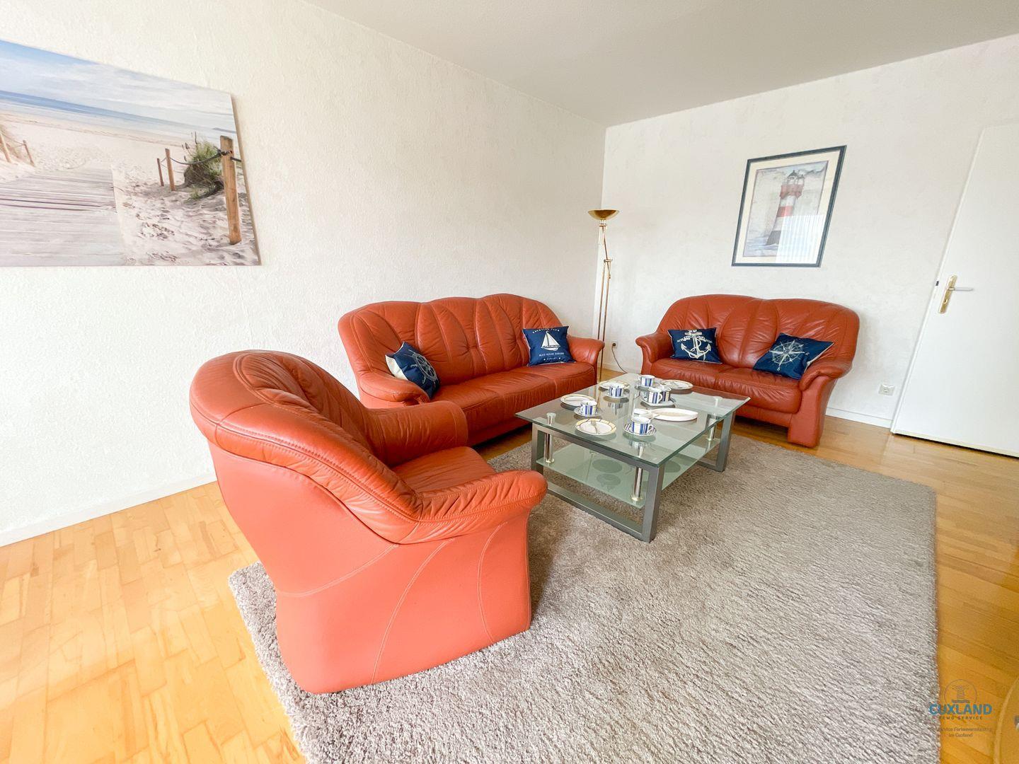 Gemütliche Maisonette-Ferienwohnung in Cuxhaven mit zwei Balkonen, großem Essbereich und Tiefgaragenplatz für erholsamen Familienurlaub.