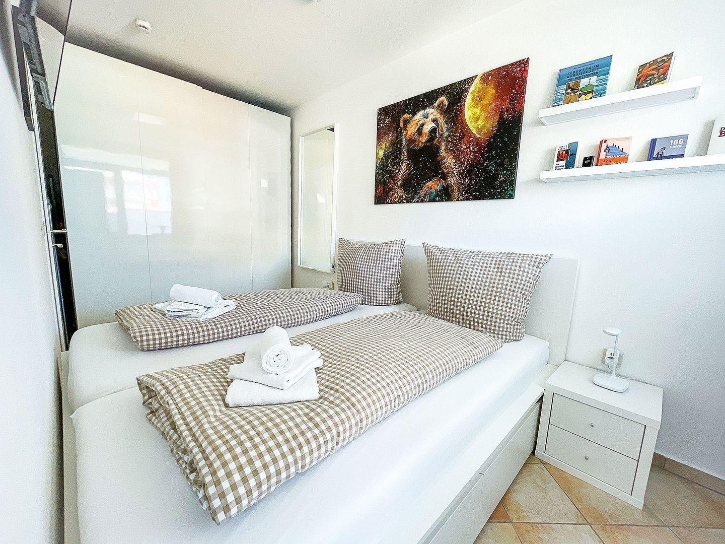 Zwei behagliche Schlafzimmer sorgen für erholsamen Schlaf – beide mit eigenem Fernseher für individuelle Rückzugsmomente. Das moderne Bad mit Dusche rundet das Wohlfühlambiente ab.