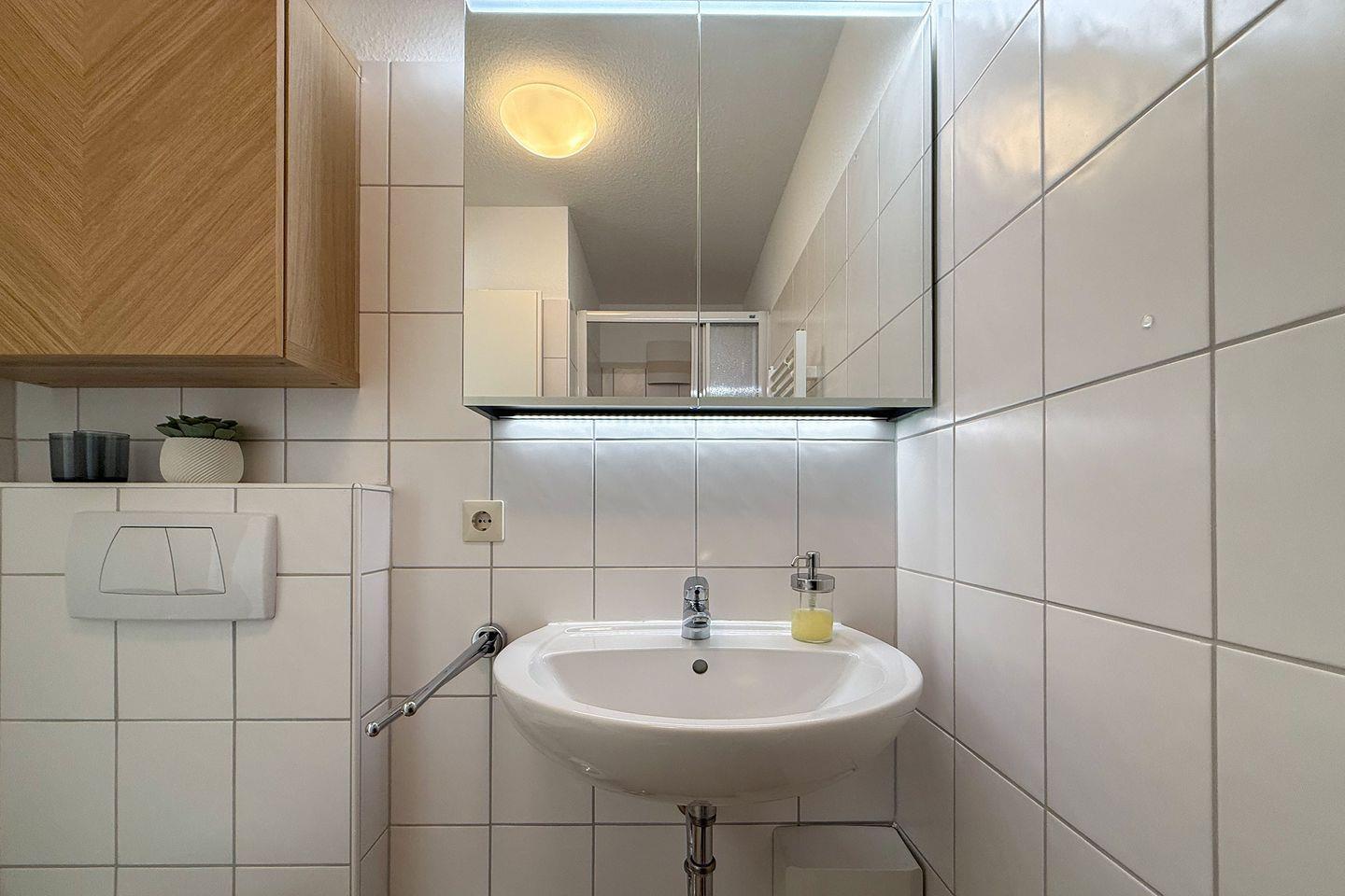 Das Badezimmer ist mit einer Dusche ausgestattet und verfügt über alle wichtigen Annehmlichkeiten wie ein WC, Waschbecken und einen Haartrockner. Waschmaschine und ein Trockner stehen gemeinschaftlich zur Verfügung und erleichtern Ihnen die Pflege Ihrer Wäsche während Ihres Aufenthaltes.