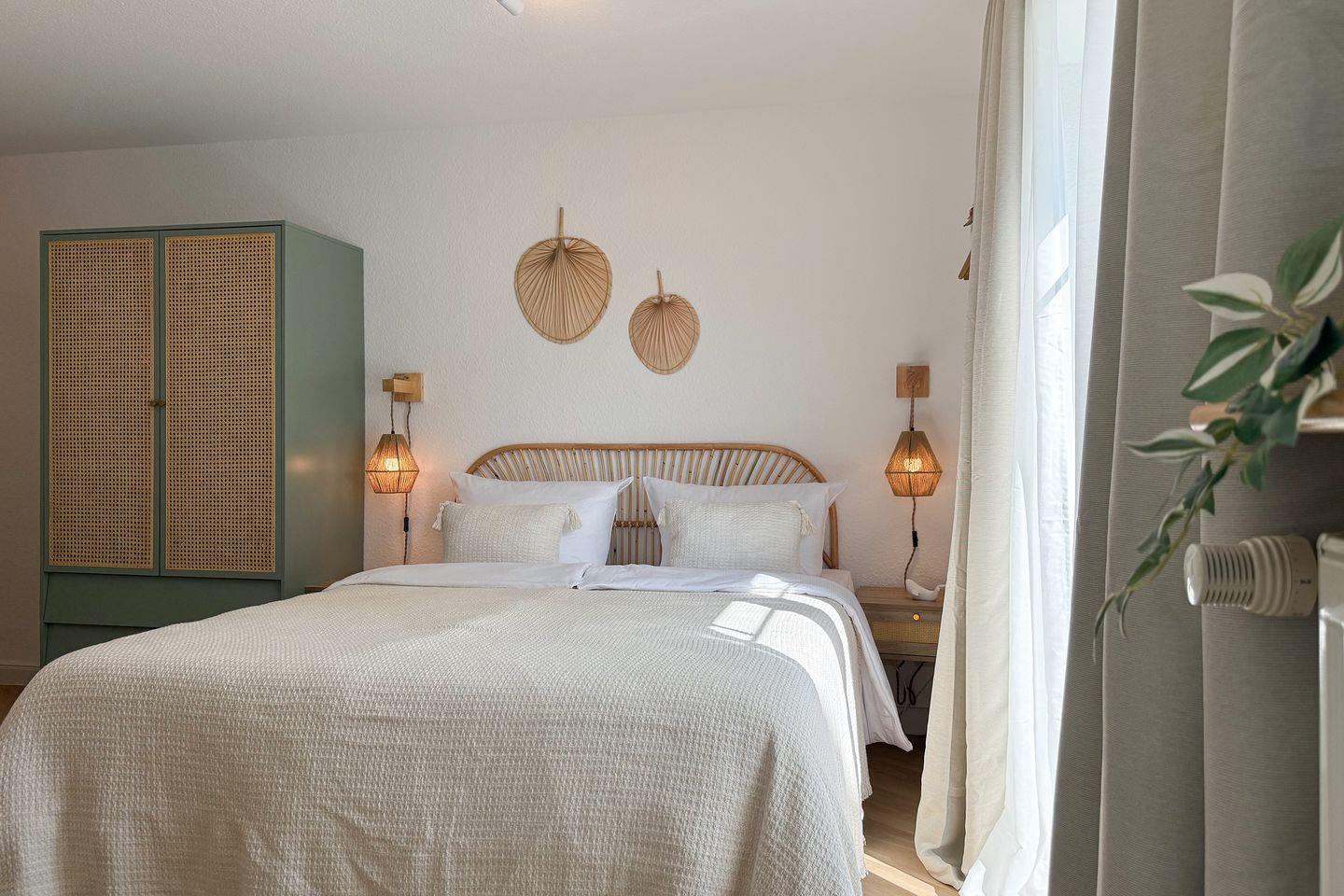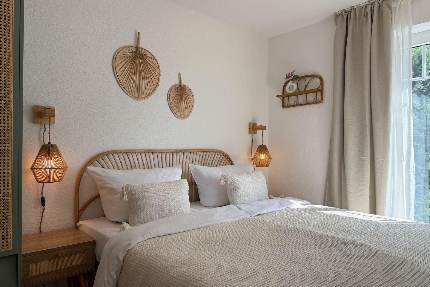Die Ferienwohnung befindet sich im Parterre eines zweigeschossigen Gebäudes und ist modern und gemütlich eingerichtet. Der offene Wohnbereich mit Wohn- und Essbereich bietet Ihnen eine angenehme Atmosphäre, um sich nach einem erlebnisreichen Tag zu entspannen. Ausgestattet mit hochwertigen Vinylbodenbelägen und einer komfortablen Couch lädt der Wohnraum zum Verweilen ein. Ein schwenkbarer Fernseher sorgt für Unterhaltung, während WLAN und Internet zur Verfügung stehen, um auch während Ihres Aufenthalts in Verbindung zu bleiben.