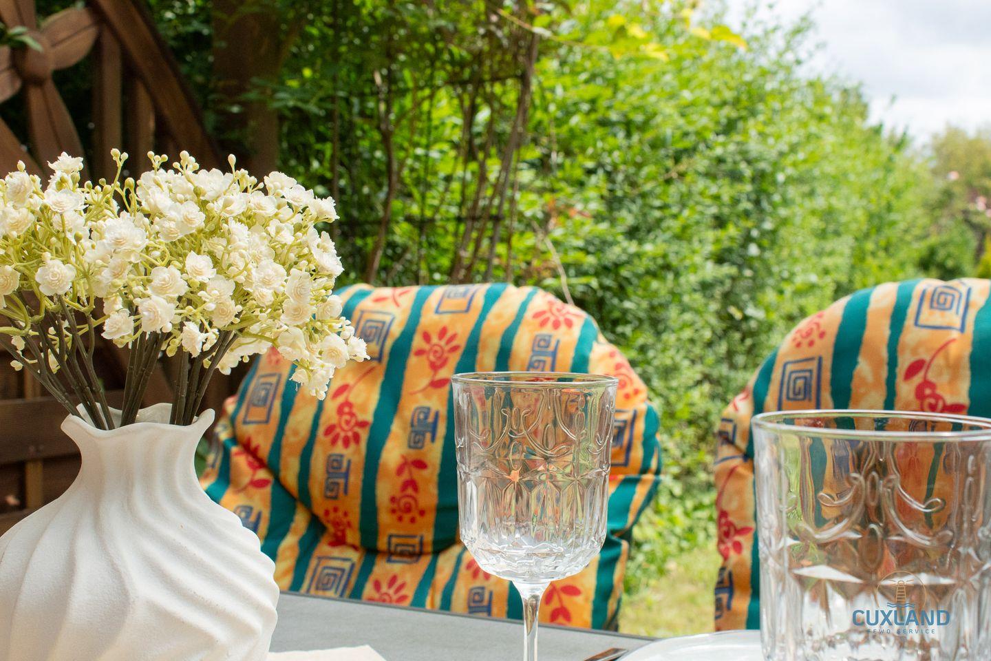 Die überdachte Terrasse ist ein weiteres Highlight dieses Hauses und eignet sich perfekt für entspanntes Frühstück im Freien. Hier genießt du die frische Nordseeluft und kannst den Blick in den Garten schweifen lassen. Kinder sind herzlich willkommen und können sich im Garten austoben.