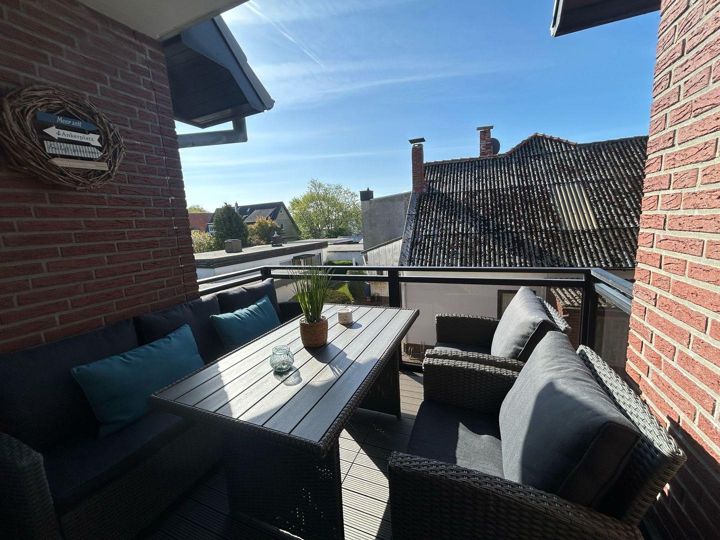 Genieße die frische Nordseeluft auf dem sonnigen Balkon.
