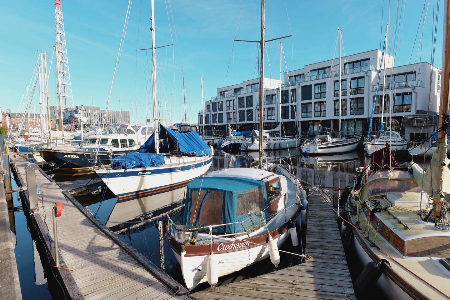 Charmante Ferienwohnung "Hafenblick-Marina" direkt am Yachthafen von Cuxhaven mit traumhaftem Hafenblick und maritimer Atmosphäre.